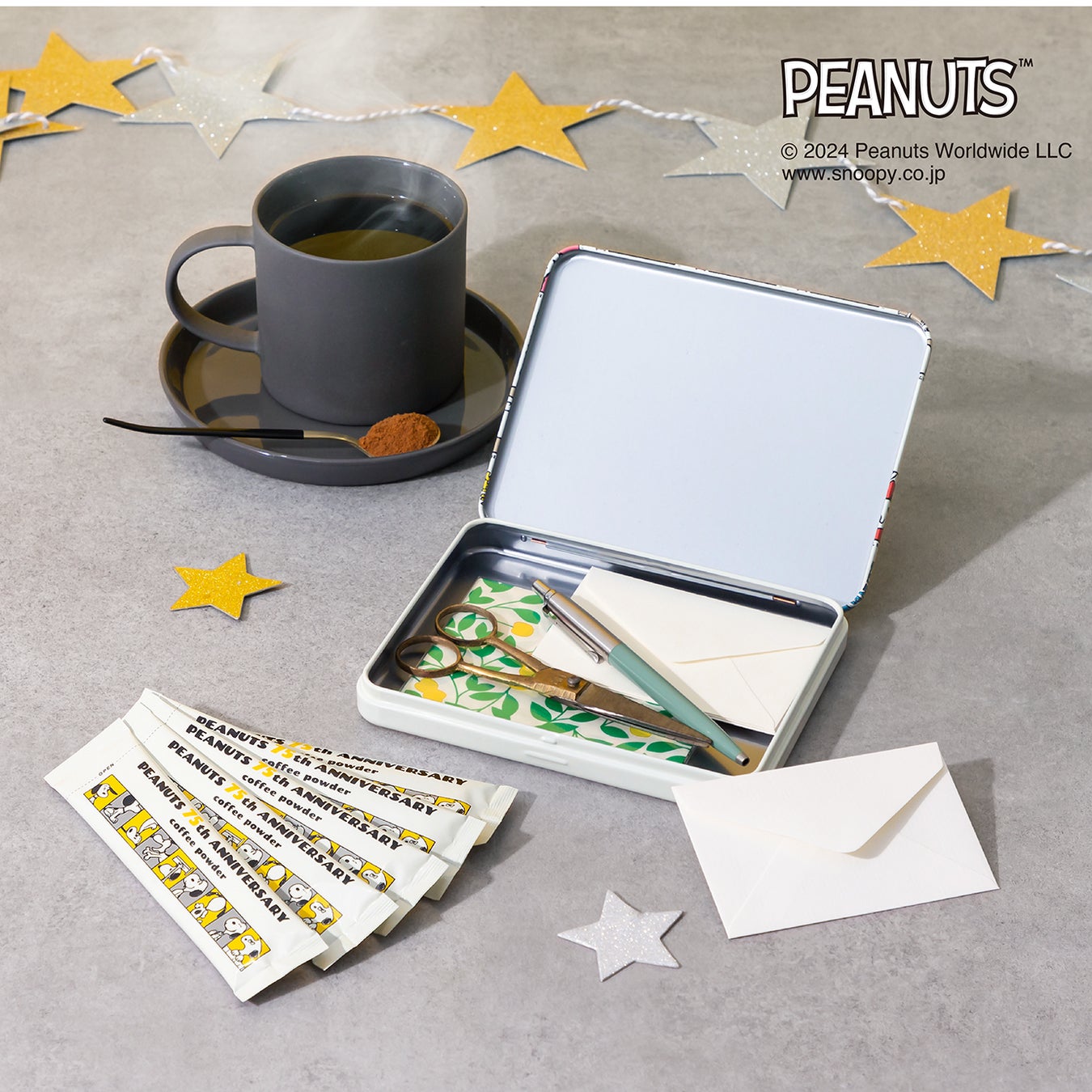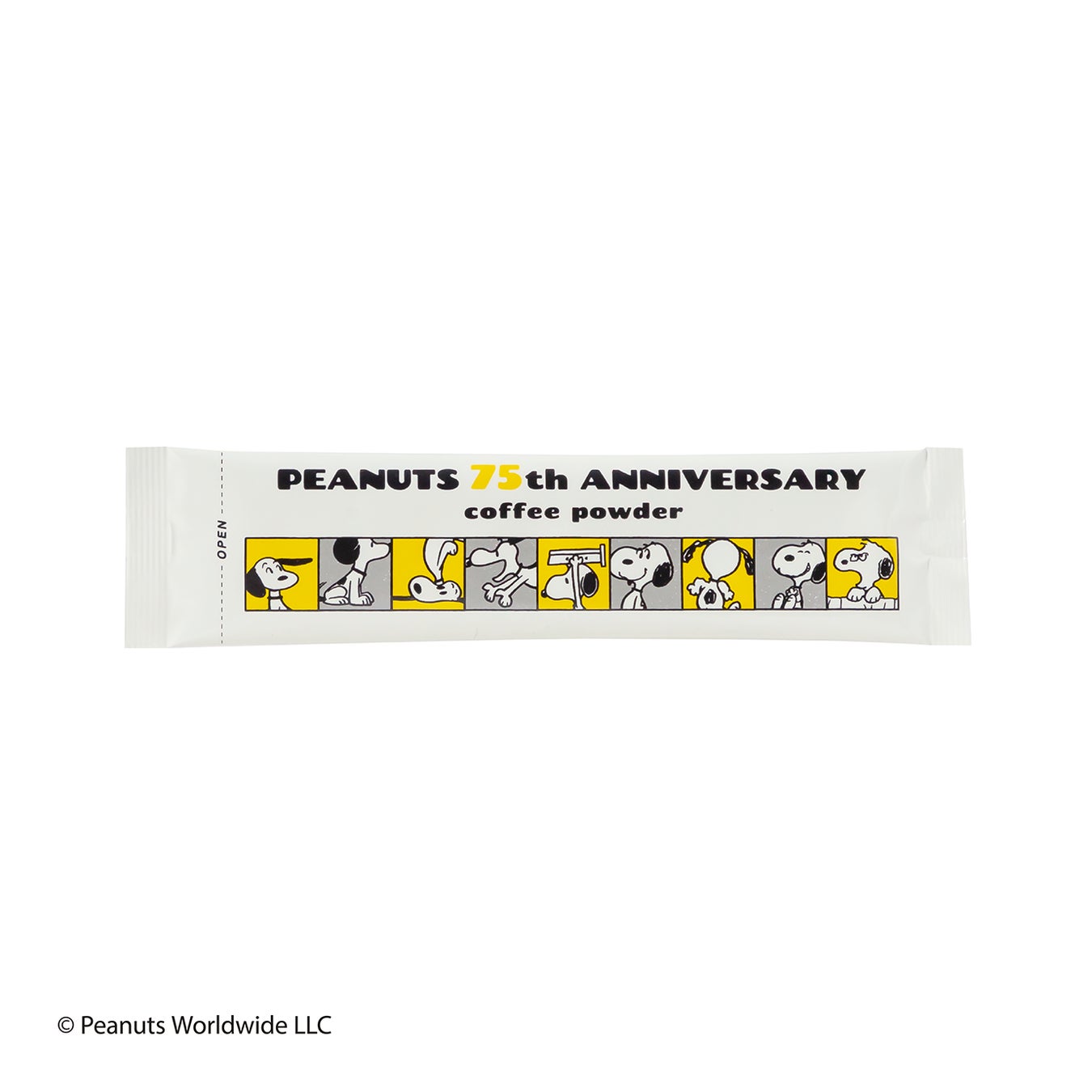 『年代別ブレンド』および『アニバーサリーブレンド』に入っているコーヒーパウダーのスティックは、コーヒーパウダーをカップに入れる瞬間も楽しんでいただけるよう歴代のスヌーピーを描きました。いろんな表情のスヌーピーが可愛らしい、75周年限定デザインです。