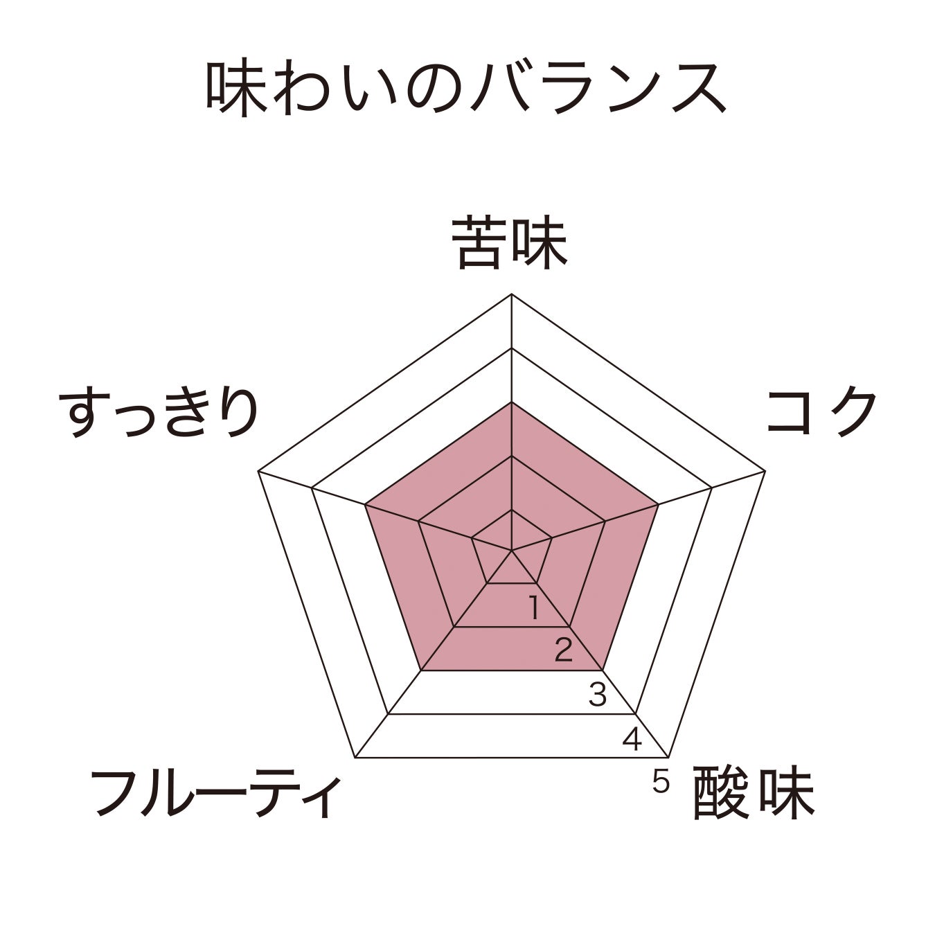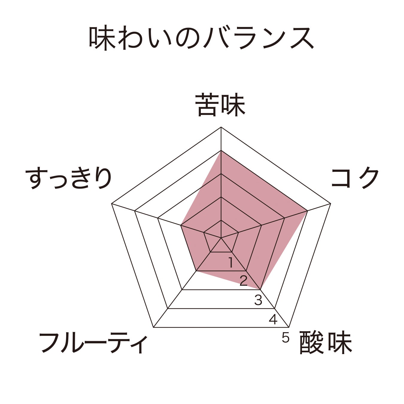 バランスが取れた味わいで3種類の中でも特にアイスコーヒーとの相性が良く、華やかなコーヒーがお好みの方におすすめです。