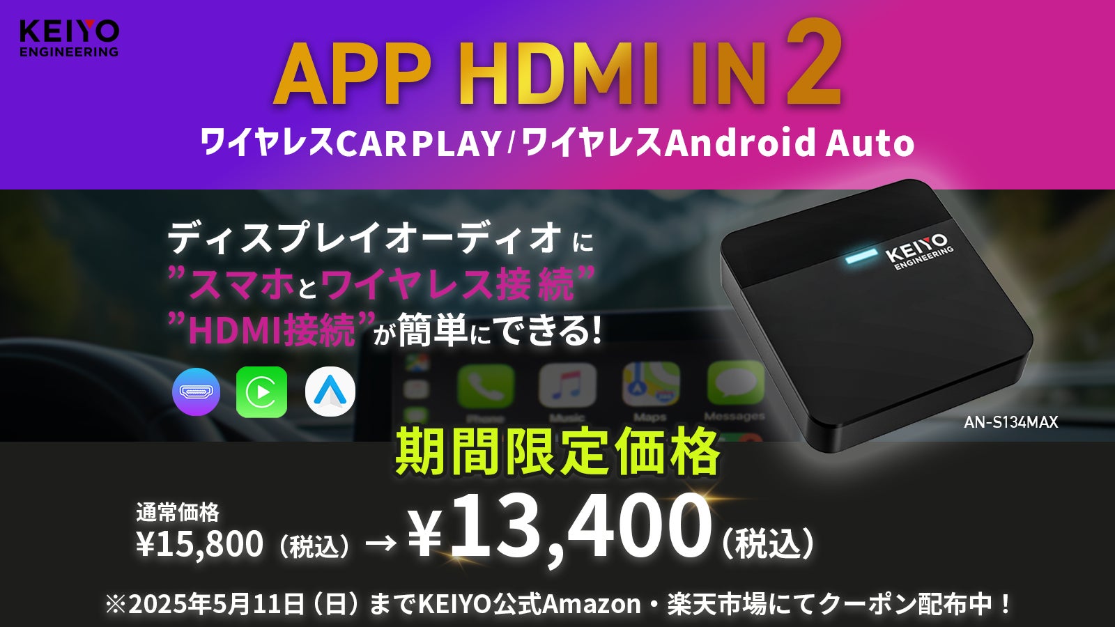 ワイヤレス CarPlay・Android Auto・HDMI をこれ一台で!『AN-S134 MAX』KEIYO 公式Amazonにて 販売開始!