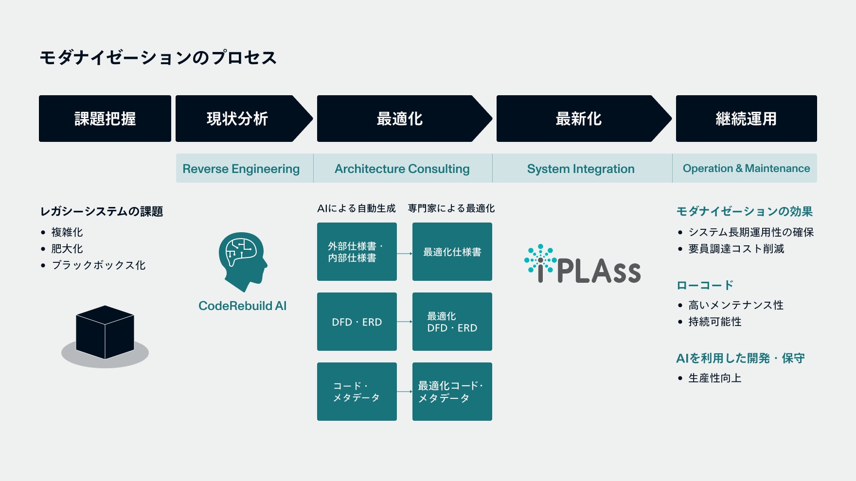 ~生成AI活用のレガシーシステム刷新サービス 『CodeRebuild AI』とオープンソースのローコード開発プラットフォーム『iPLAss』の連携によりモダナイゼーションプロセスを一気通貫で支援~