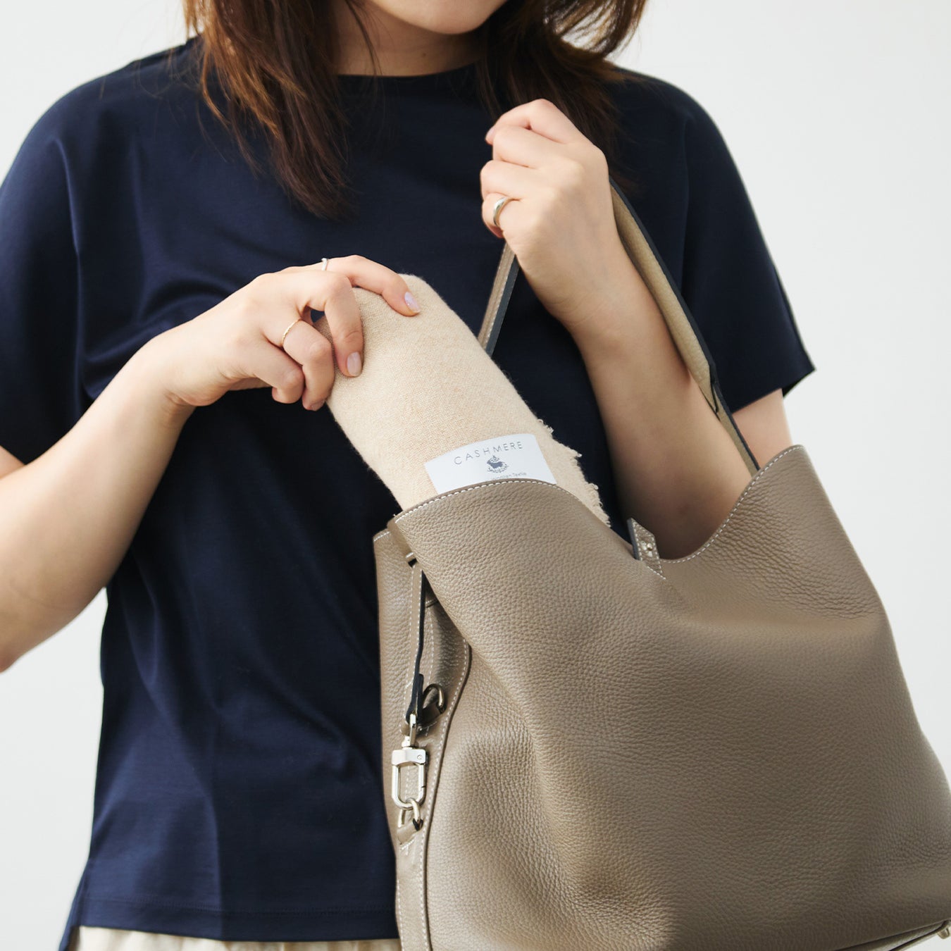 首元にしっかりと巻けば、生地が何重にも重なることでカシミヤならではの保温性がしっかりと発揮されます。