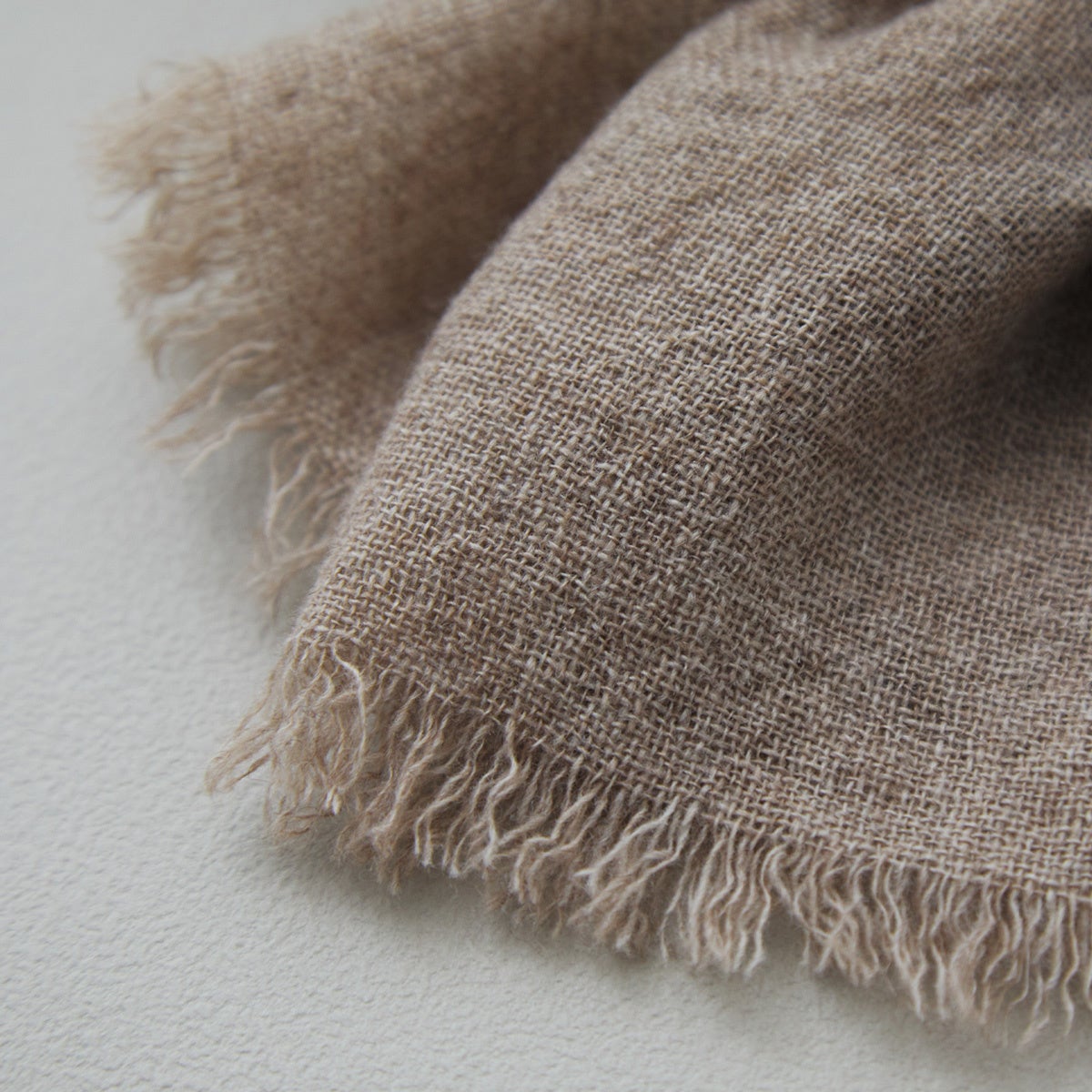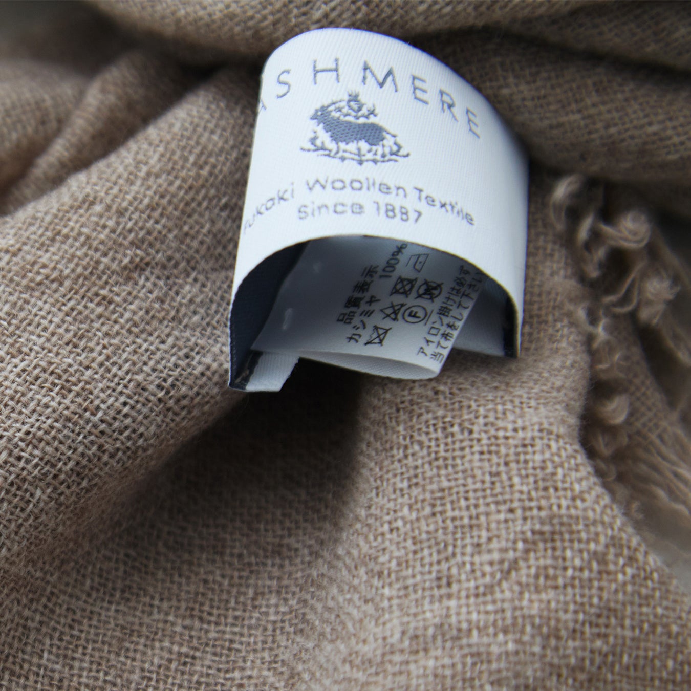 深喜毛織ならではのふっくらとしたカシミヤ糸と、武藤株式会社の手間暇を惜しまない製織のコラボレーションによって、薄くてソフトな、それでいてしっかりとした1枚が完成しました。