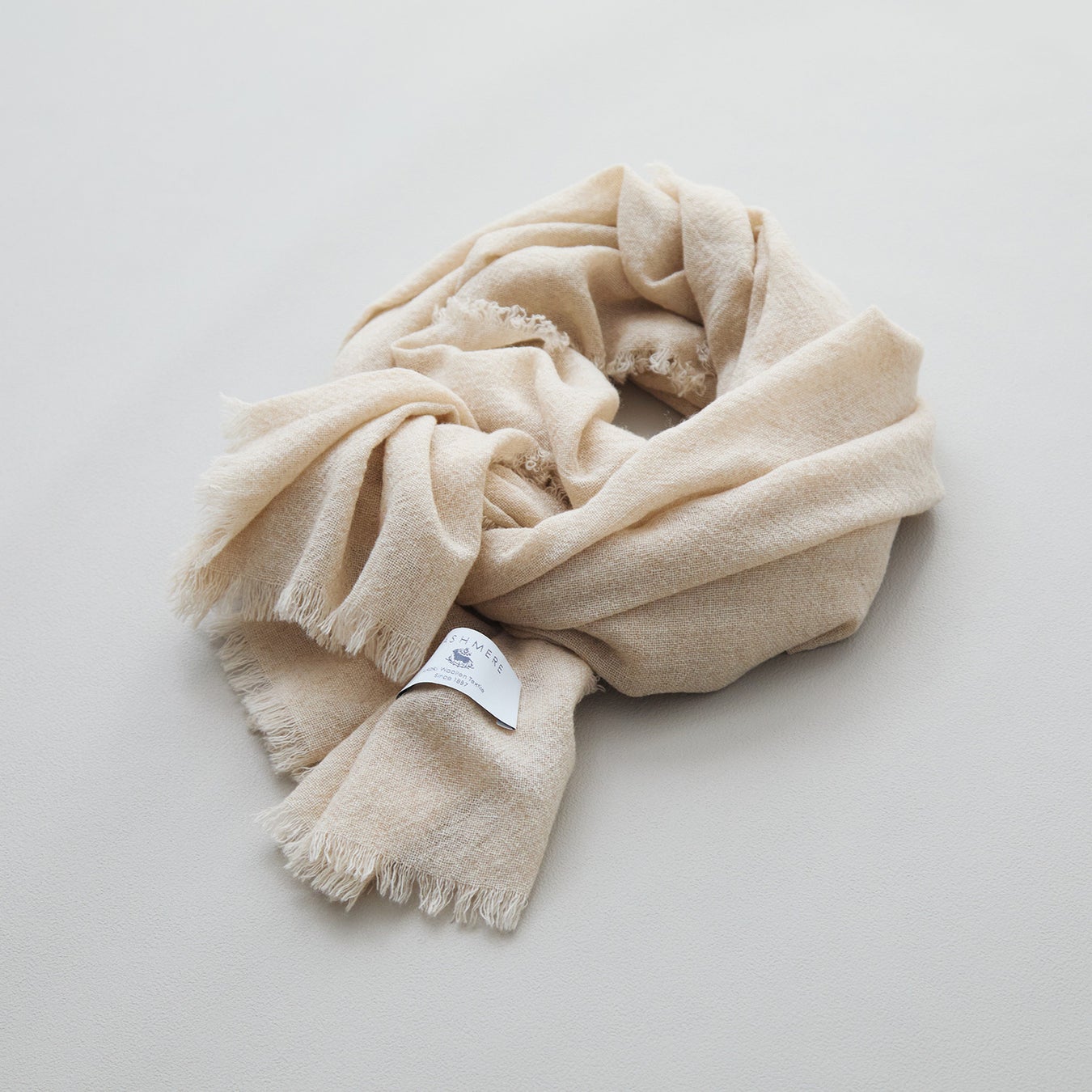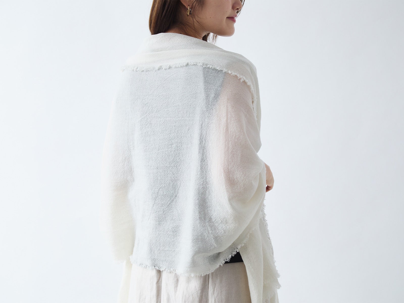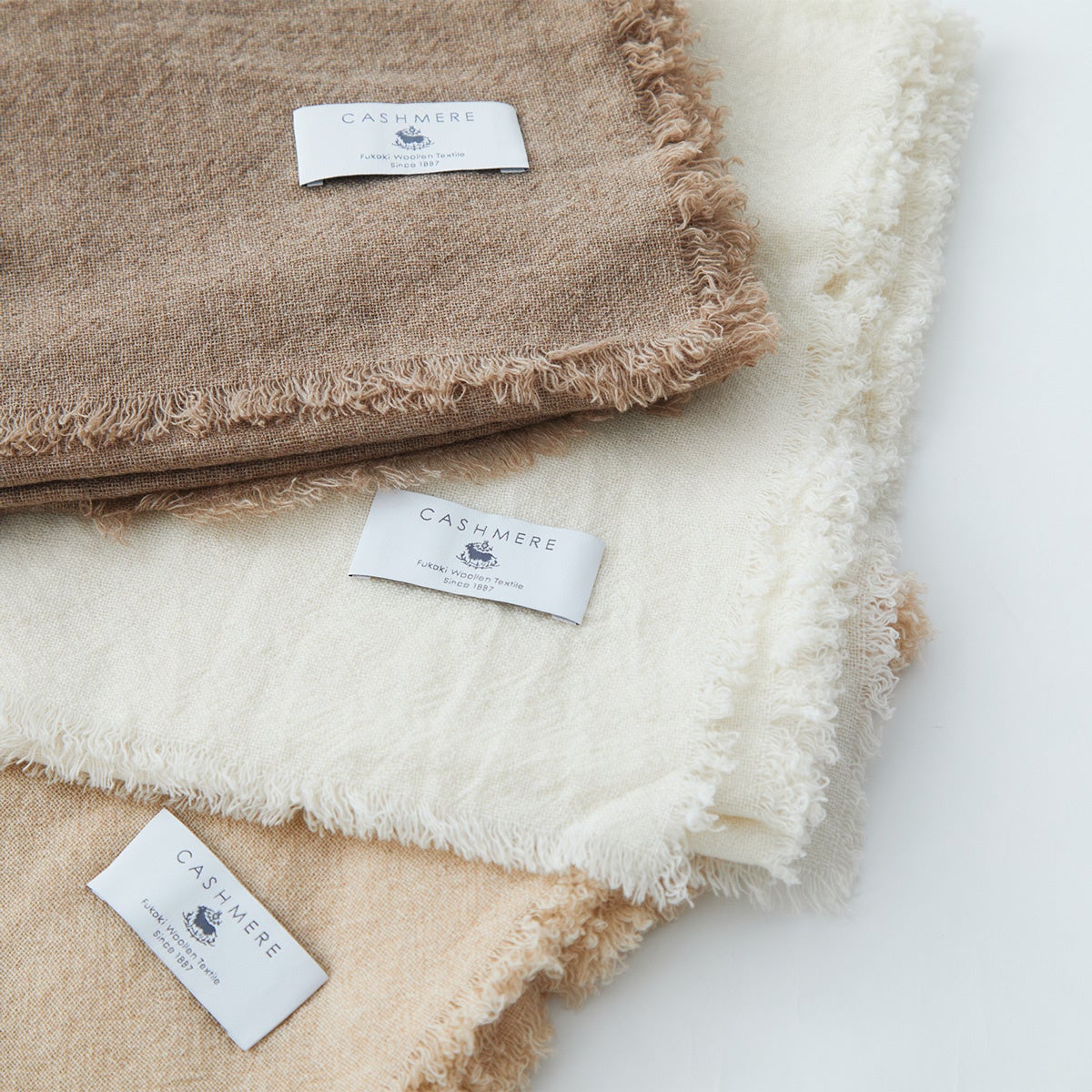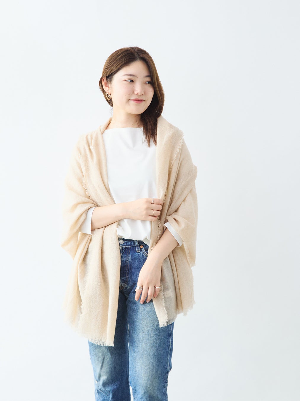 空気をはらんだ羽衣のようなカシミヤストールは、365日わたしたちの日常により添ってくれ、使い続けるほどに味わい深い風合いに変化していきます。