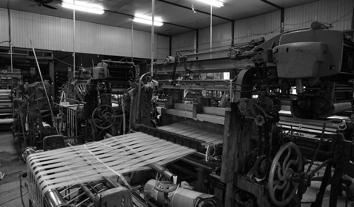 武藤株式会社では昔ながらの力織機を使って、ゆっくりじっくり生地を織り上げます。