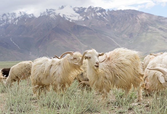 カシミヤ山羊にもいろんなカラーの山羊がいますが、ホワイト・ベージュ・ブラウンの山羊の毛を漂白や染色をすることなく、そのものの毛色のまま糸にしています。