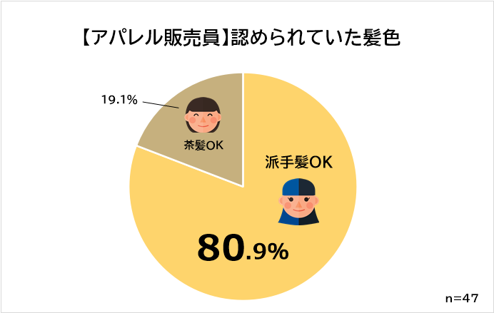 アパレル販売員も「派手髪OKだった」という回答が多数。