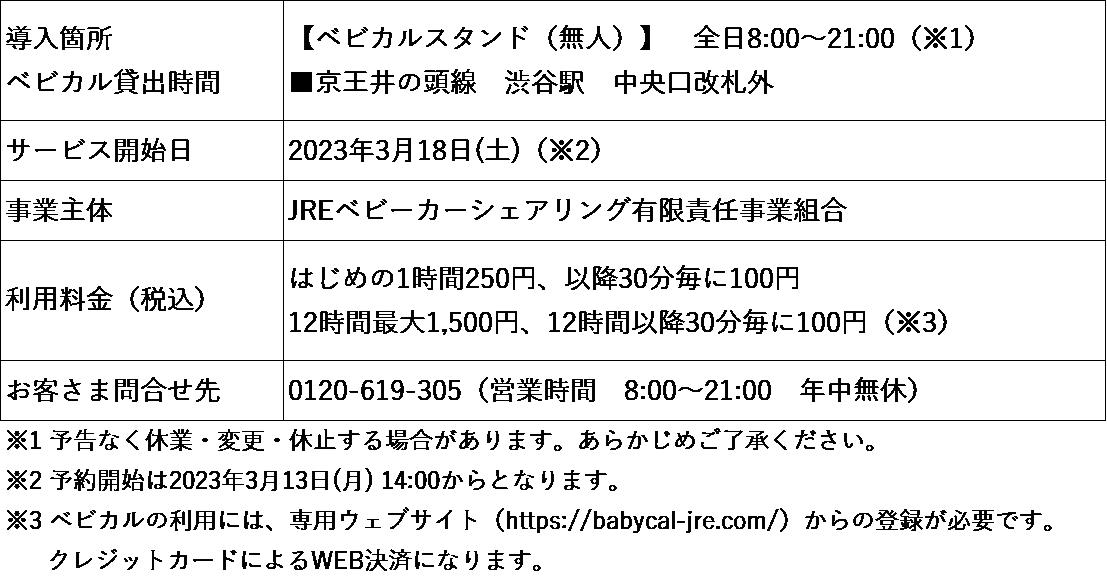 ◆JREベビーカーシェアリング有限責任事業組合(組合員:東日本旅客鉄道株式会社、株式会社ジェイアール東日本企画)は、子育て世帯が子供たちと気軽に外出できる社会の実現を目的として、外出先でも便利に利用できる、予約可能なベビーカーレンタルサービス「ベビカル」を展開しています。