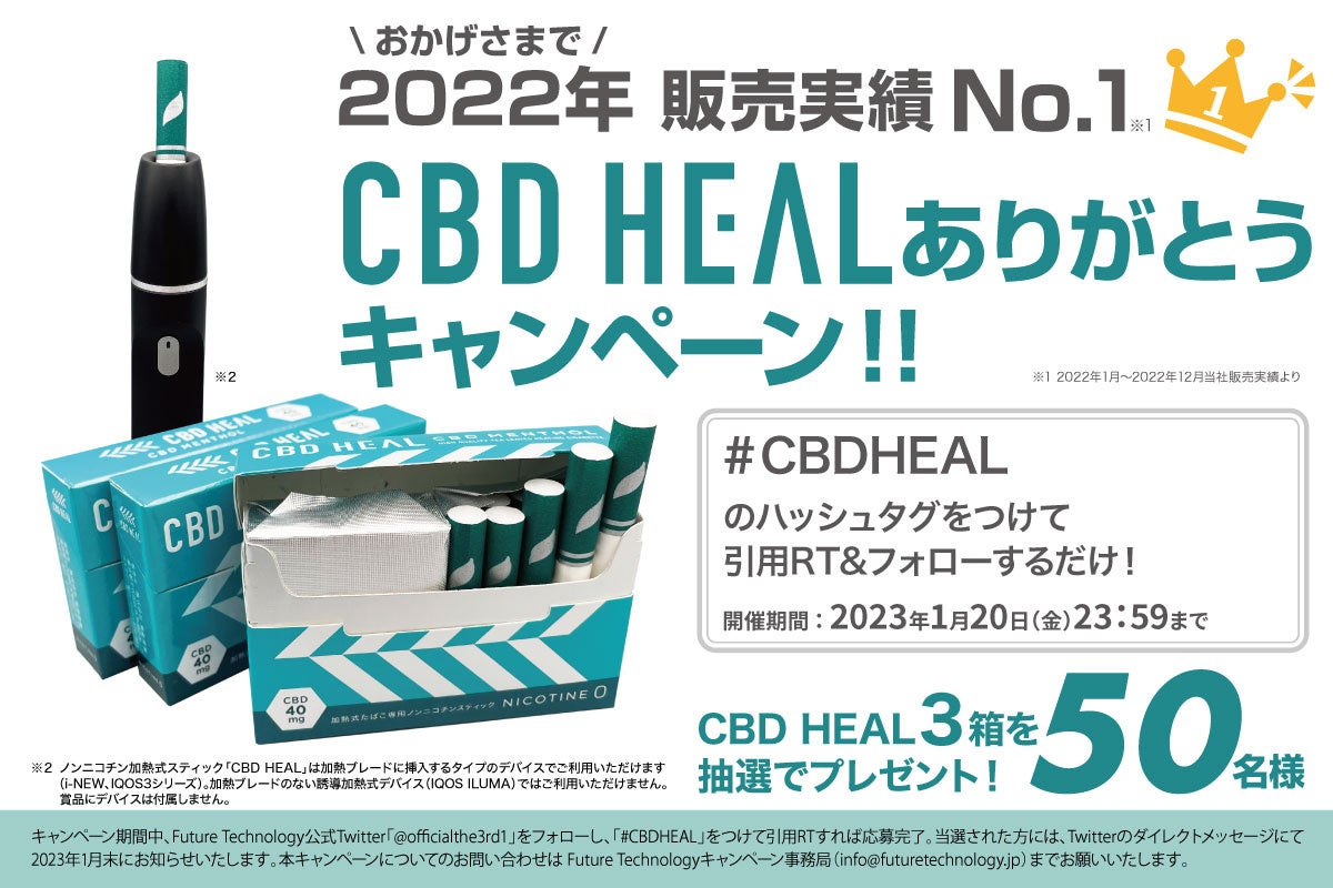【CBD HEALありがとうキャンペーン】ノンニコチン加熱式スティック「CBD HEAL」のご愛顧を感謝してTwitterキャンペーン実施。1月20日まで開催予定です。