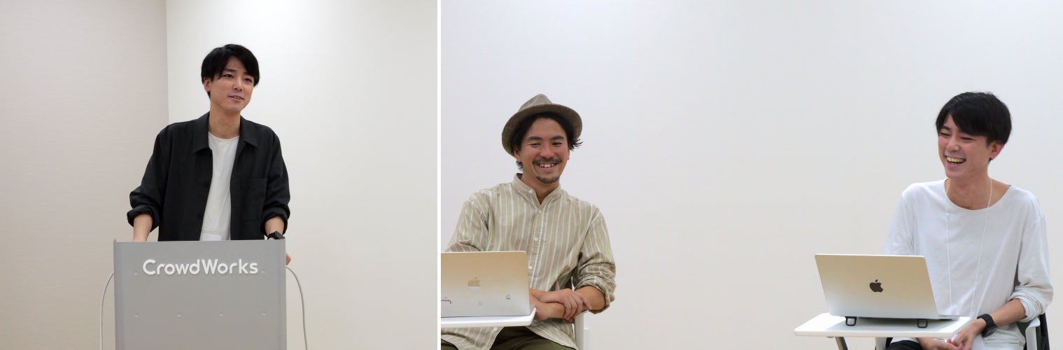 本イベントではクラウドワークスの「みんなのカレッジ」事業責任者 田中 健士郎様にゲスト参加いただき、PXC執行役員 佐々木ゴウとの対談や、参加者同士による取材のワークショップが行なわれました。