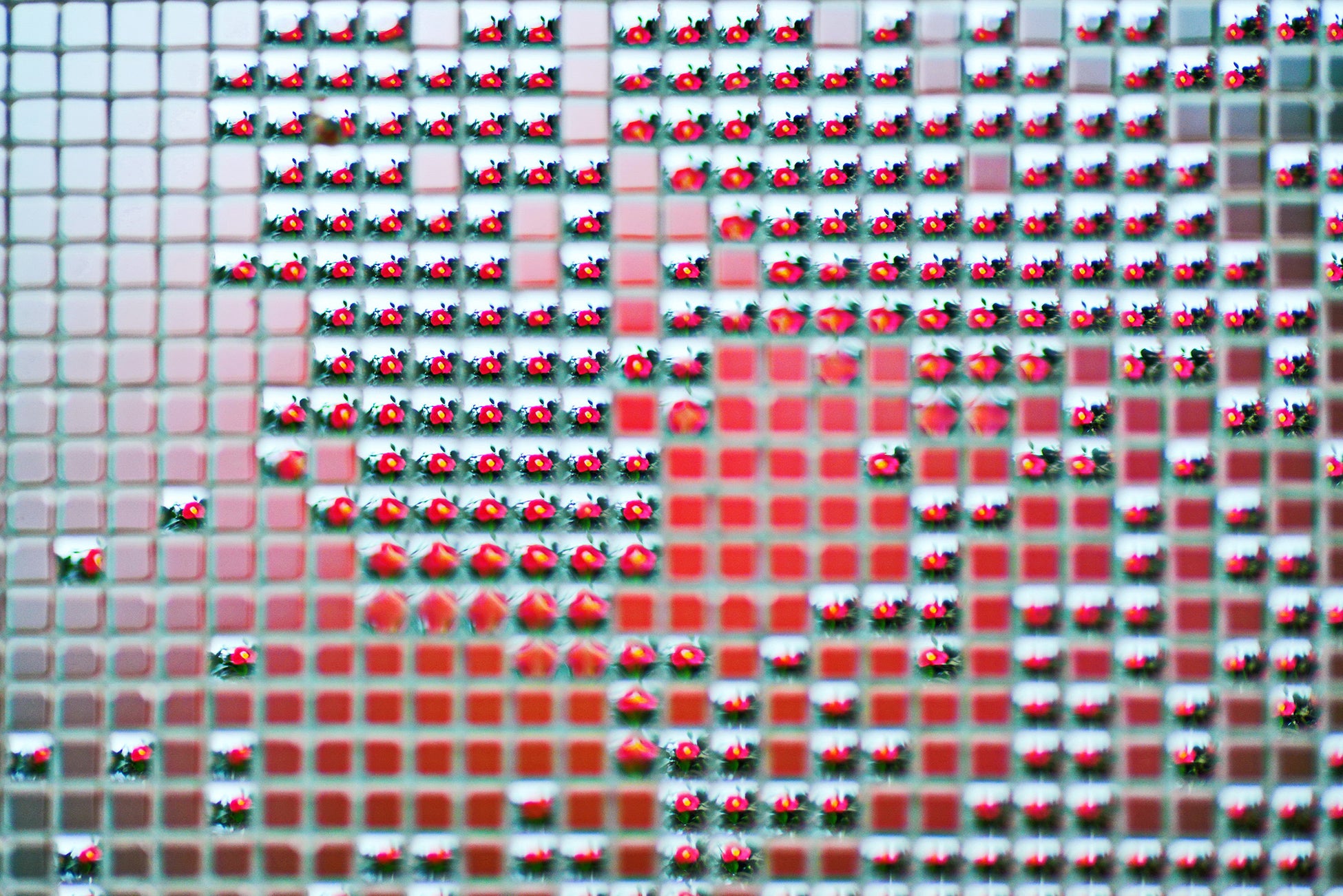 水滴の概念を覆されました! 網戸についた、というよりも網目に詰まった水滴ですね。ここをこう仕上げてくるかというのが正直な感想で、この視点には本当に脱帽しました。中の映り込みが水量によってハッキリ見えていたりぼけていたりと写り方に変化があるのでひとつずつ見ているだけでも楽しいですし、正方形の編み目とランダムについている水滴がモザイク画の一部分を切り取っているようで、このままひいていったらどんな絵が見えてくるんだろうと想像するだけでわくわくしてしまいます。これ以上の言葉はいらないですね。本当に素晴らしい! 金賞おめでとうございます。