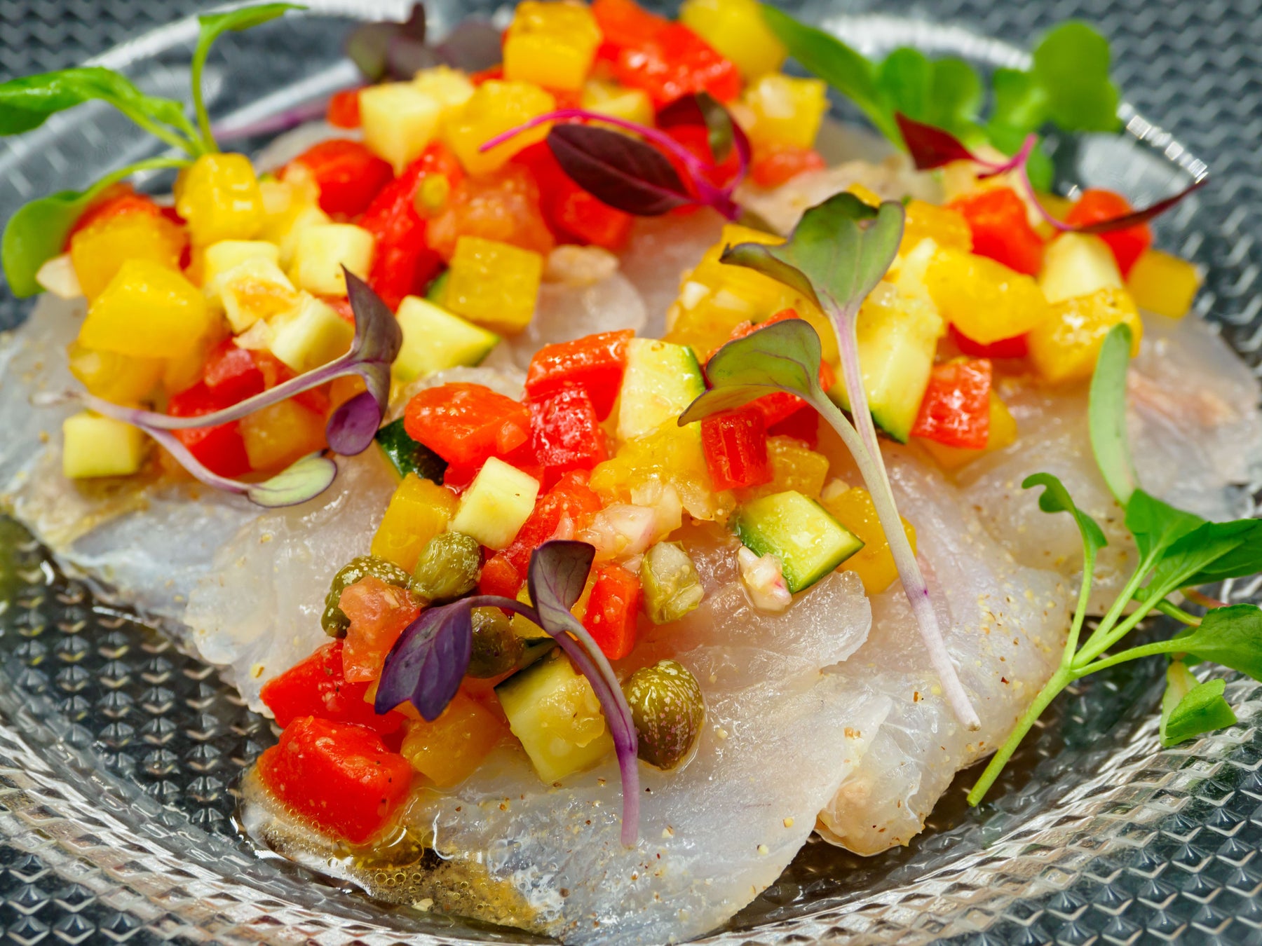 ヒラメのマリネ 夏野菜のラヴィゴットソース