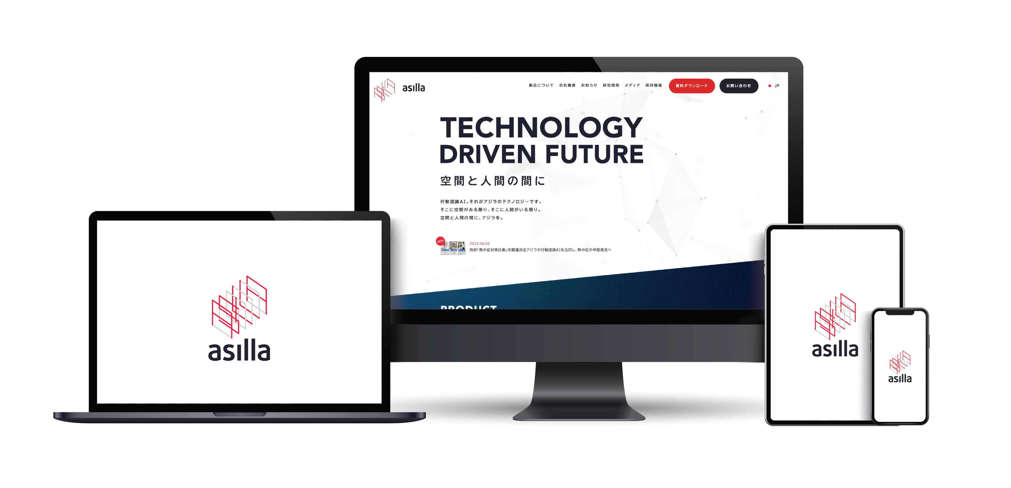 アジラ公式ウェブサイトを皮切りに、同社のすべてのコミュニケーションツールは、この新しいブランドデザインに順次変更いたします。このリニューアルにより、行動認識AIを中心としたテクノロジーが生み出す新たな空間の価値と弊社のブランドアイデンティティをより鮮明に訴求します。