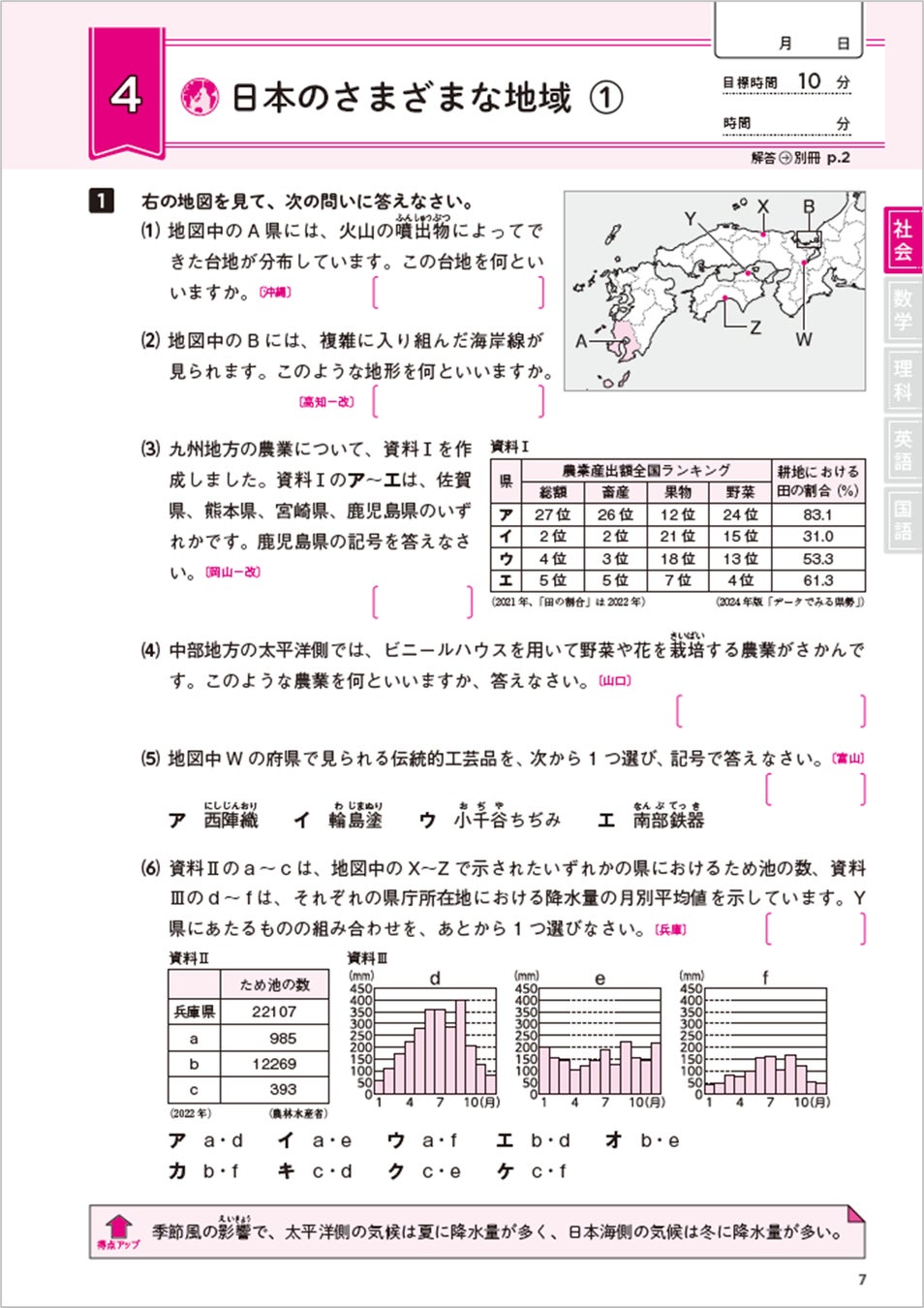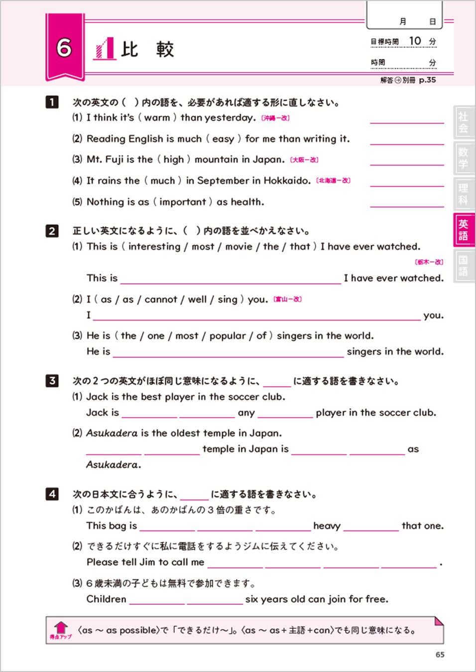 ●部活が忙しくても続けられる!<1単元1ページ・10分>の問題構成