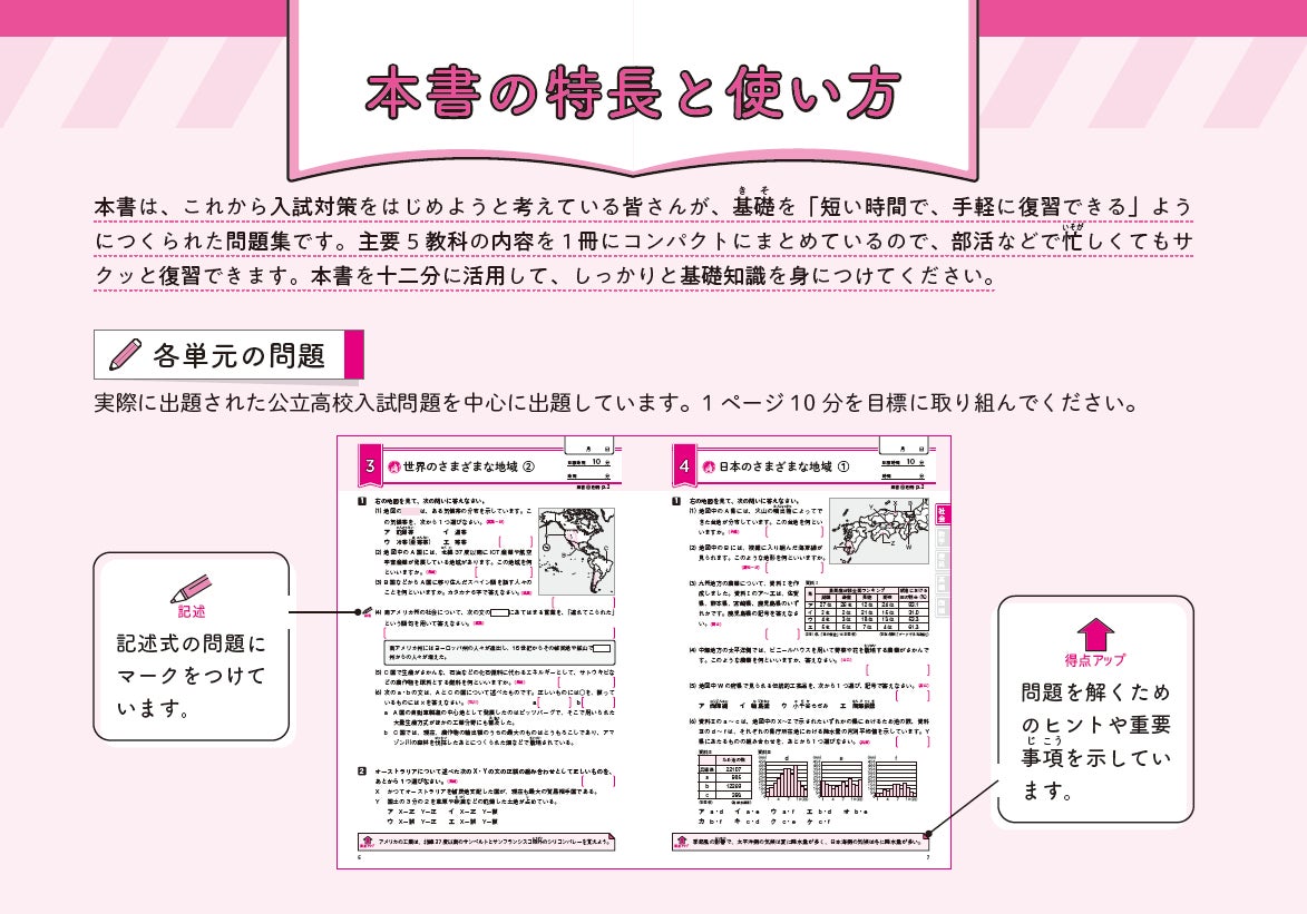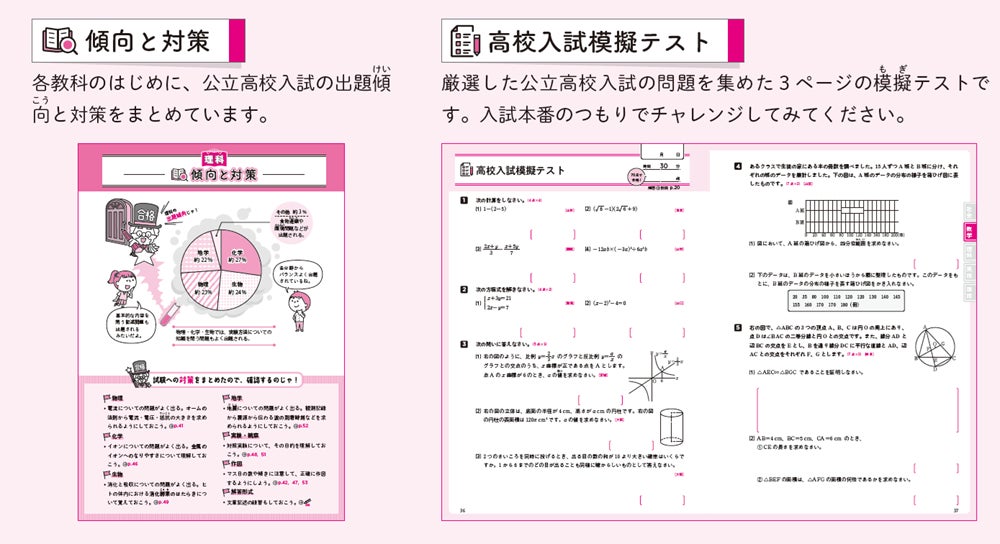 また各教科の最初には、公立高校入試での傾向と対策を解説するページを掲載。効率的な入試対策に欠かせない、出題傾向のチェックができます。