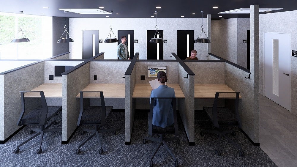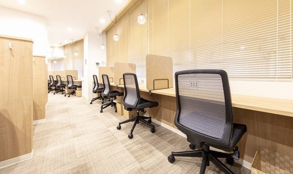 当施設では、1名用の鍵付きの完全個室を19戸用意しています。一般の賃貸オフィスを借りる際に発生する敷金などの高額な初期費用が一切不要※3で、インターネット回線やデスク、チェアも備え付けられており、すぐにビジネスを開始できます。