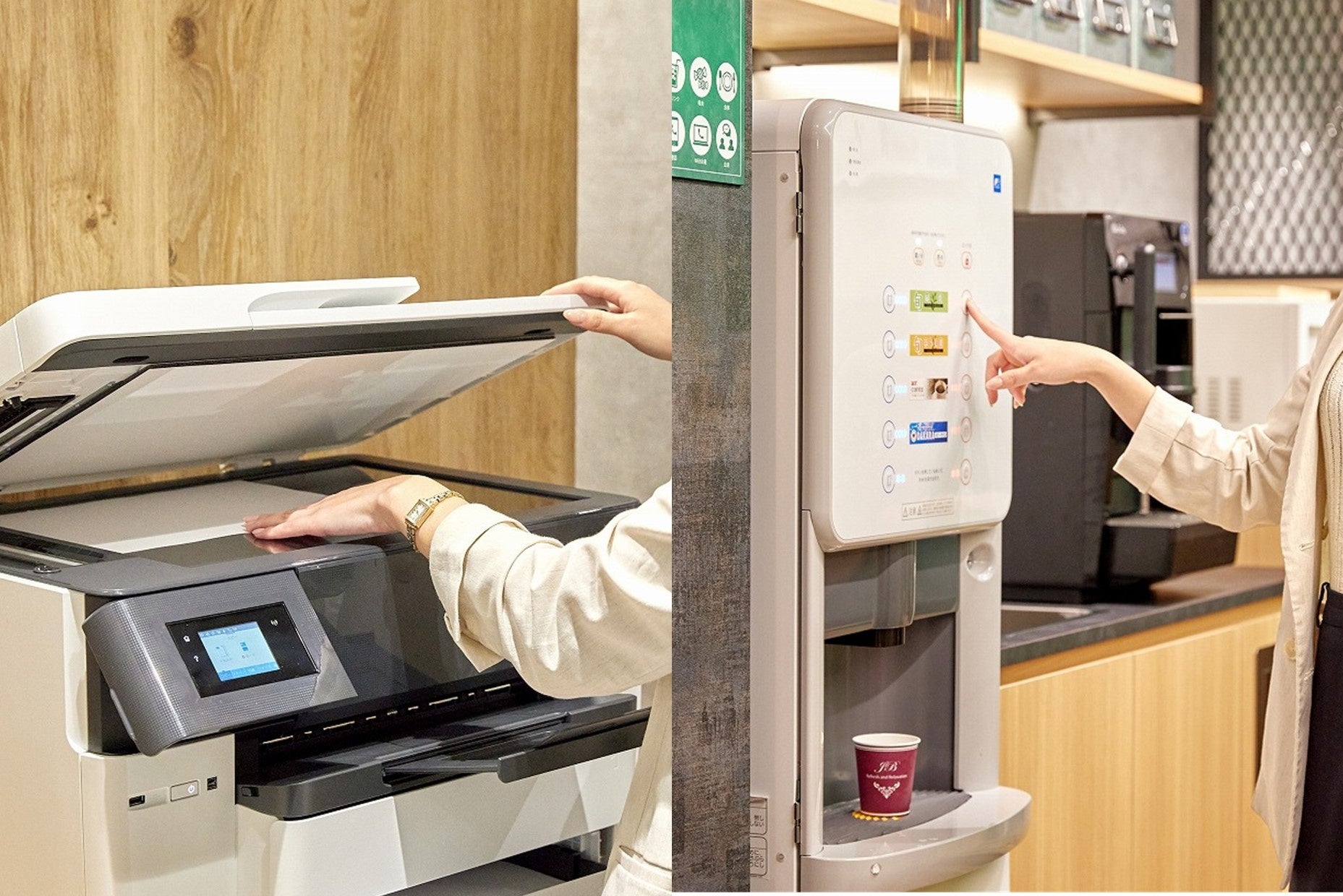 高速Wi-Fi 、無料プリンター、シュレッダーなど、ビジネスに欠かせないOA 機器の他、フリードリンクも用意しています。毎日通えば1日およそ360円※4で利用でき、カフェのコーヒー1杯程度の費用で、快適な作業環境を手に入れることができます。