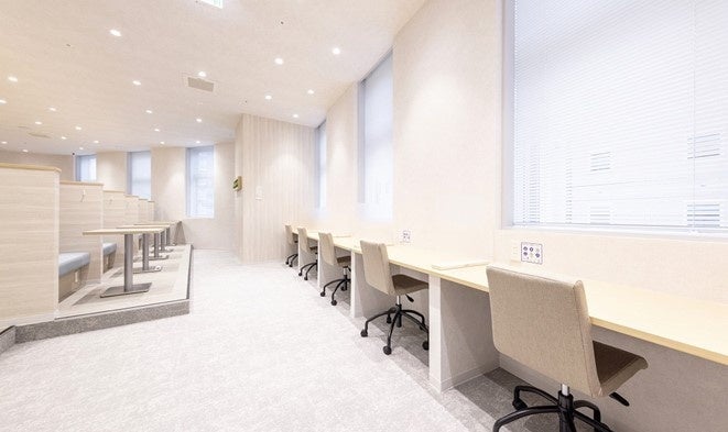 当施設のコワーキングスペースには、WEB会議や食事が可能な「カフェブース」、自習勉強など集中したいときに静かに過ごせる「ワークブース」、1名用完全個室の「テレフォンブース※2」といった、シーンに応じて使い分けができる3つのブースを用意しています。テレフォンブースは、周りに聞かれたくない電話・オンラインでの打ち合わせや、大事な商談、面談などにご利用ください。また、ゲストを招いて利用できる4名用の会議室※2も用意しています。