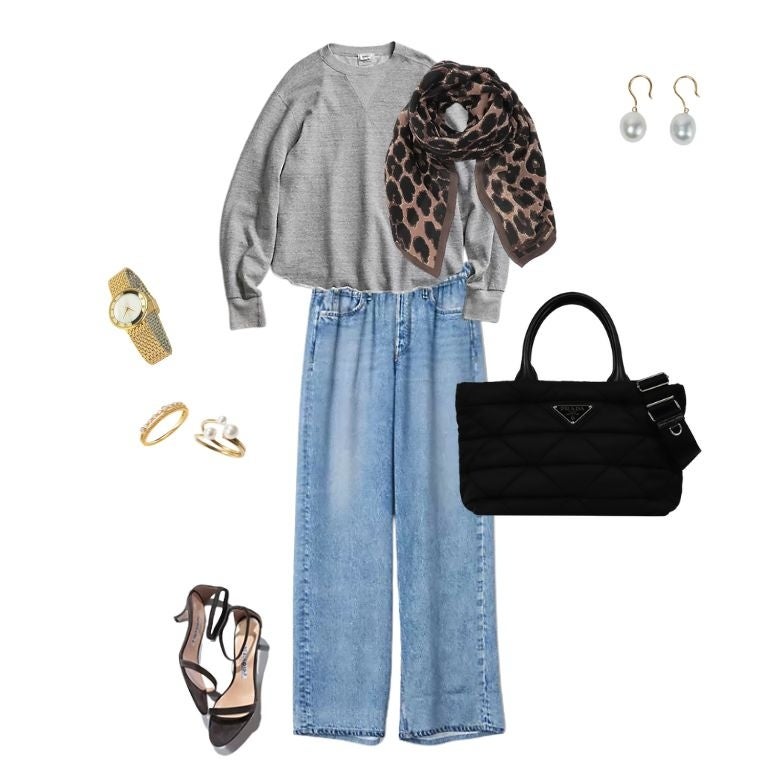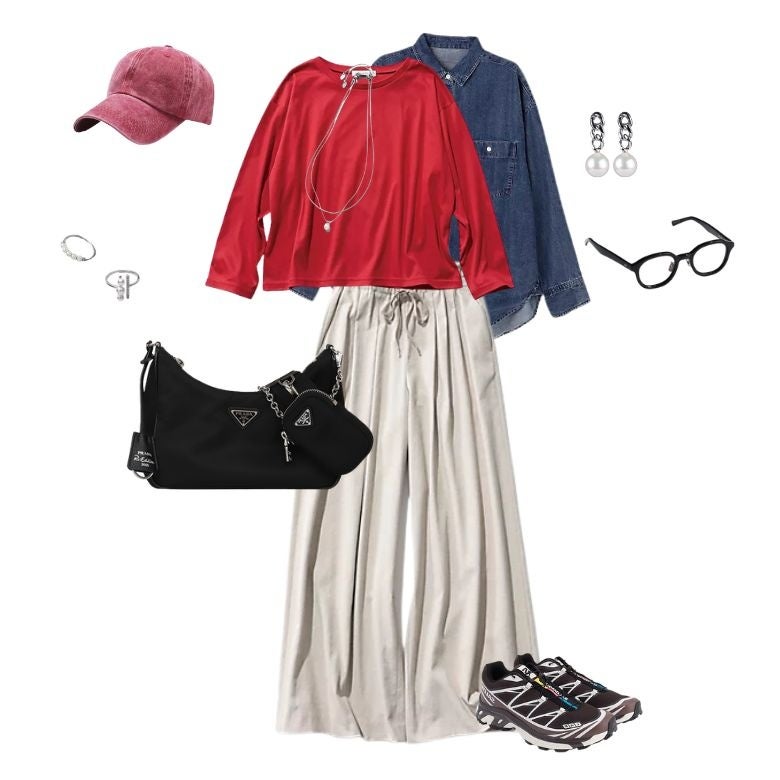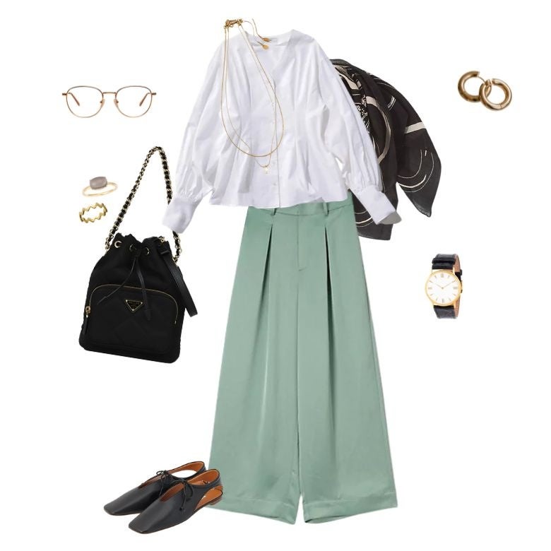 きれいめとカジュアルを組み合わせた大人のミックススタイルにおすすめです。通勤やランチ、ちょっとした外出など、きちんと感を保ちながらもリラックスしたいシーンに適しています。上品さとトレンド感を両立できるコーディネートです。