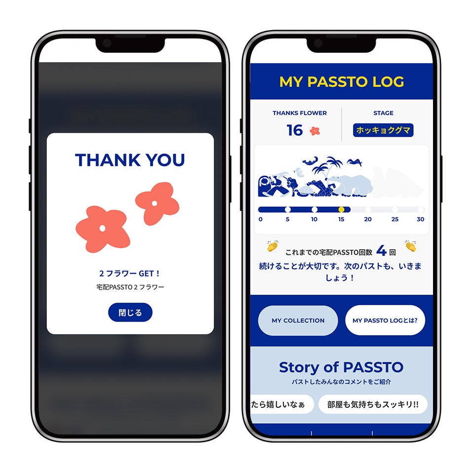 宅配PASSTOの利用回数やアクションに応じて「Thanks Flower(サンクスフラワー)」を付与。
