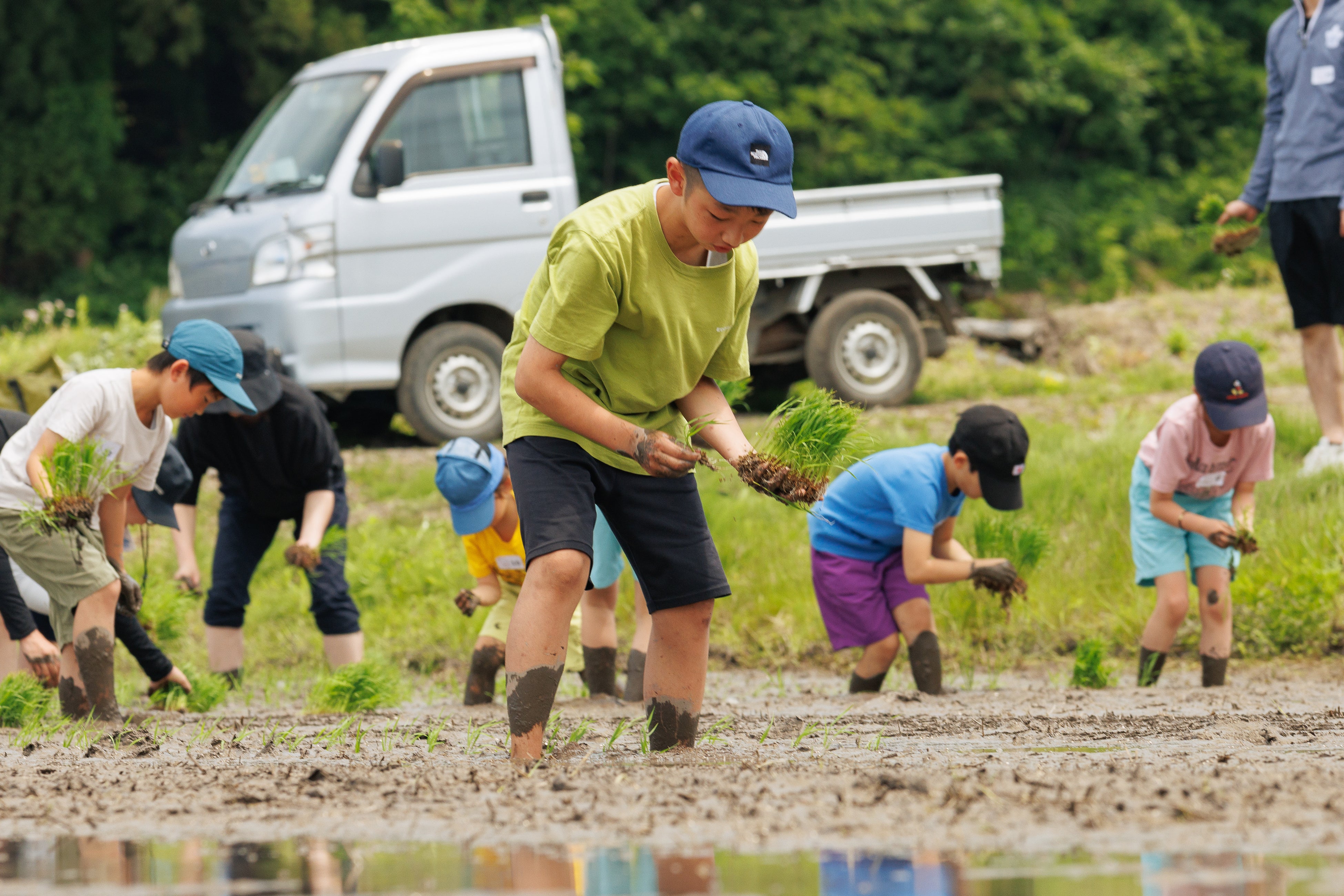 日本有数の米どころ新潟県南魚沼市にある「ピープル農場」。この田んぼに苗を植えるため、子どもたちはここへとやってきました。