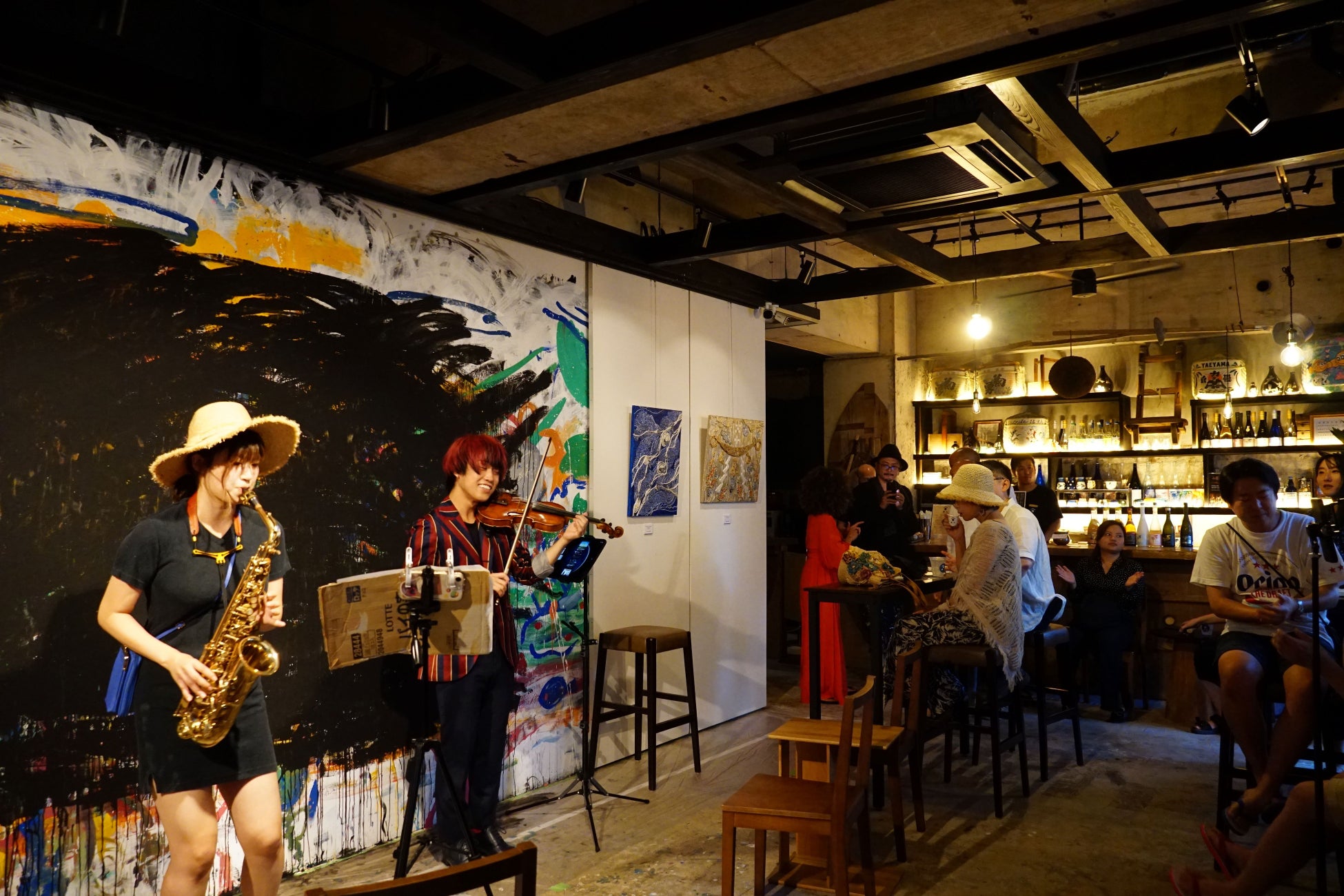 イベント開催のキックオフとして8月30日(金)~9月1日(日)の期間はアーティスト2名が会場にて三日間連続のライブアート制作を行います。「アートと日本酒」をテーマにした会場で、アーティストと一緒に飲みながらライブ感ある制作の様子を楽しみませんか。