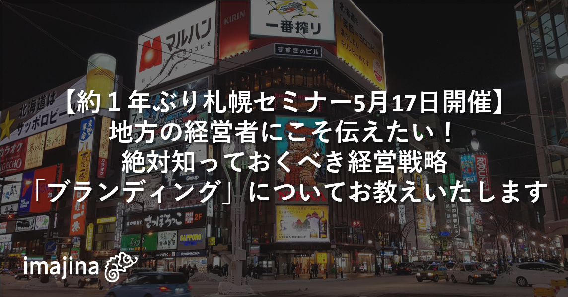 【約1年ぶり札幌セミナー5月17日開催】地方の経営者にこそ伝えたい!絶対知っておくべき経営戦略「ブランディング」についてお教えいたします