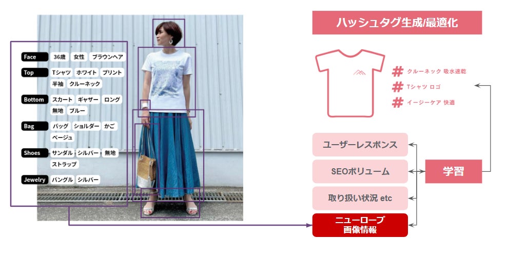 画像検索などのリコメンドやデータ分析を目的としたアイテムのタグ付け、トレンド分析など様々な分野で活用されています。
