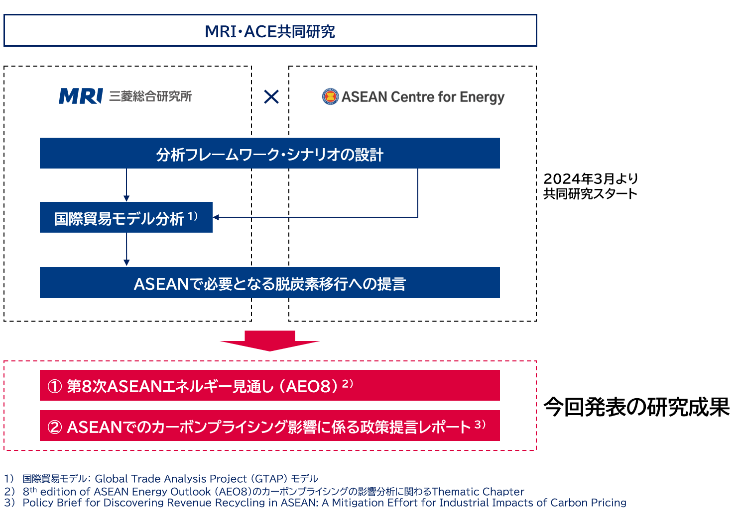 MRIとACEは3月に共同研究契約を締結(※1)し、カーボンプライシングがもたらすASEANの産業影響分析や、ASEANの産業競争力の維持・強化の視点から必要となる脱炭素移行に関する提言に取り組んできました。