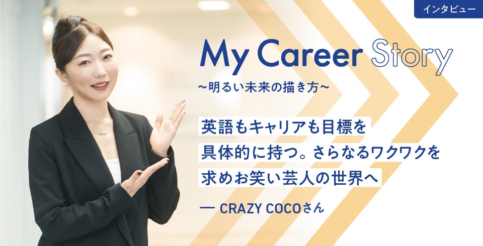 商社の営業、外資系CAを経て、35歳でお笑い芸人になるという異色の経歴を持つCRAZY COCOさんにインタビュー。英語を武器に渡り歩いてきたキャリアと、今後叶えたい夢について語っていただきました。