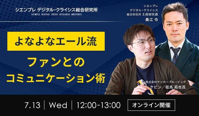 「シエンプレ デジタル・クライシス総合研究所」(所長:佐々木寿郎、住所:東京都渋谷区神南1-19-14 クリスタルポイントビル 2F、以下「当研究所」)は、経営者、広報、マーケターの皆様の業務判断の参考となるよう、世の中の炎上事例や神対応事例を分析し、無料セミナーにて情報提供を行っております。