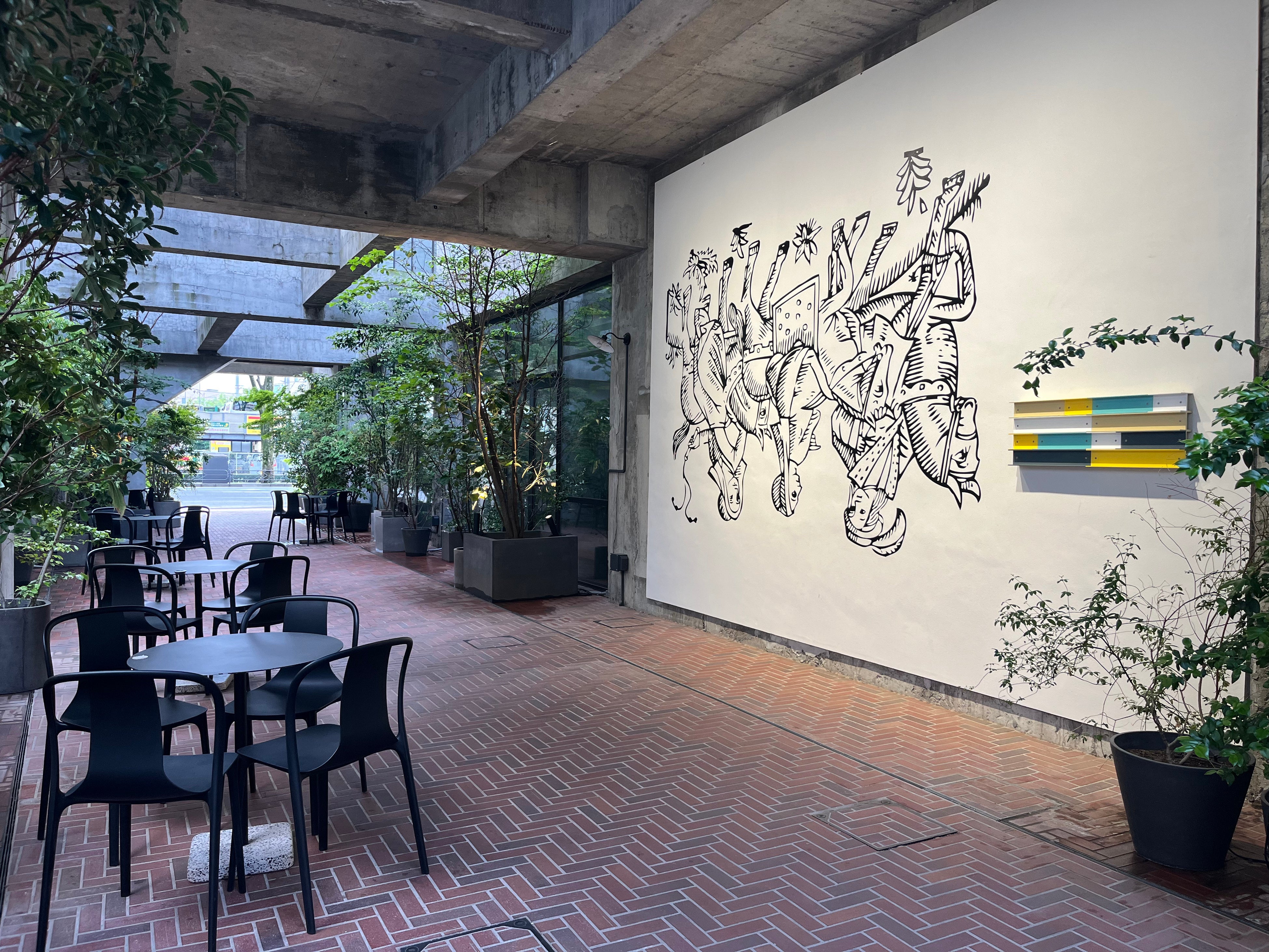 ・デザイナーズチェアに座りながら、一緒にお食事も楽しめる屋外のパサージュ