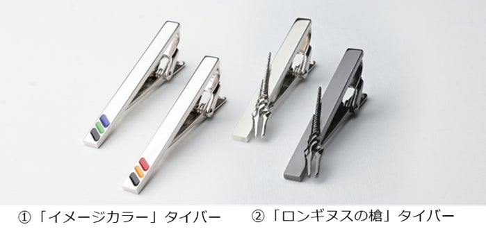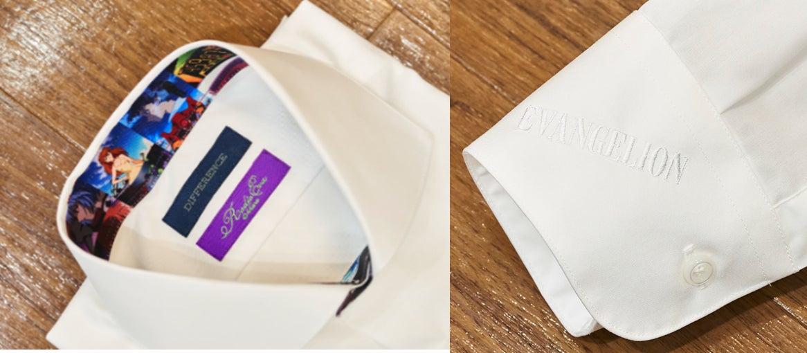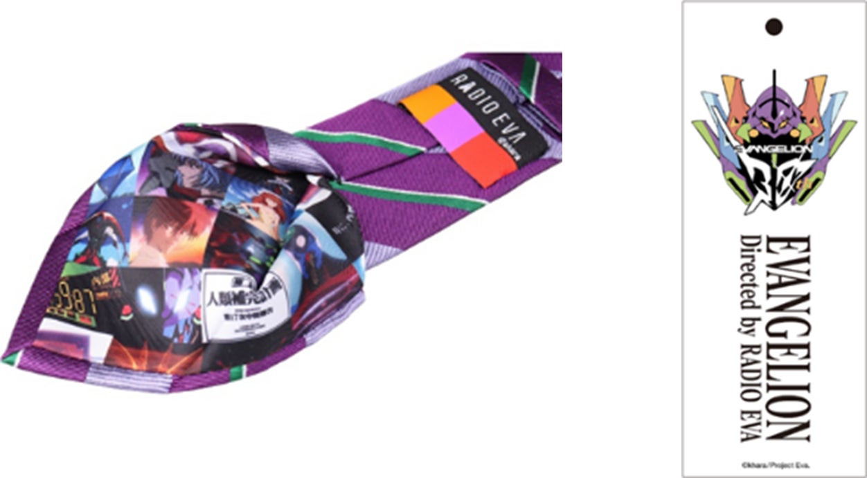 「コナカ・フタタ」では、作品をイメージできる色柄にこだわったネクタイ、ロンギヌスの槍をモチーフにしたタイバーなどを発売します。また、「ディファレンス」では『新世紀エヴァンゲリオン』の名場面を抜粋したオプション裏地を発売します。