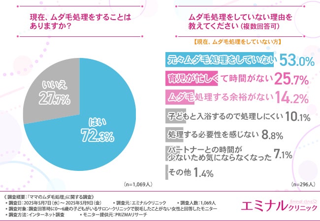 今回の調査により、育児に取り組む女性たちのムダ毛処理に関する実態と意識が明らかになりました。