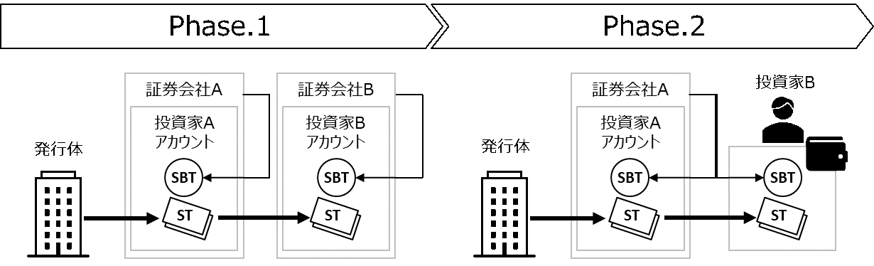 投資家Aは投資家Bに対して、STの売却・移転を行いました。投資家A及び投資家Bのアドレスには、ともにSBT が付与されているため、投資家Aの指示に基づき、STは投資家Bに移転されました。