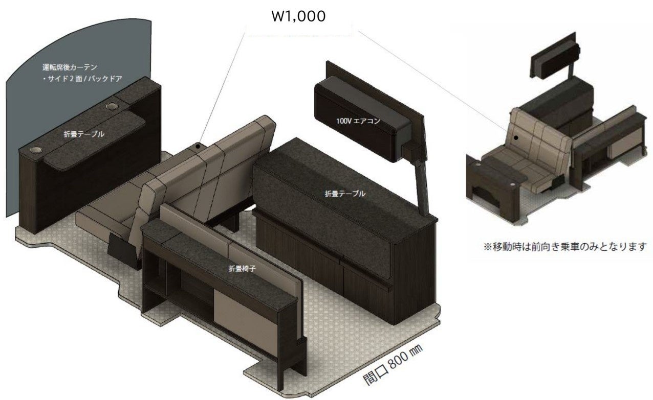 今回、新たにレンタルを開始した、太陽光パネル搭載「新型オフグリッドオフィスカー」は、お客様の声を取り入れ、内装を新規開発しました。