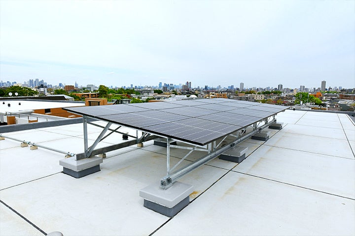 環境に配慮した再生可能エネルギーを活用するため、屋上に太陽光発電設備を導入しており、共用部分の電力のほか、停電時の一部共用設備への電力供給が可能です。