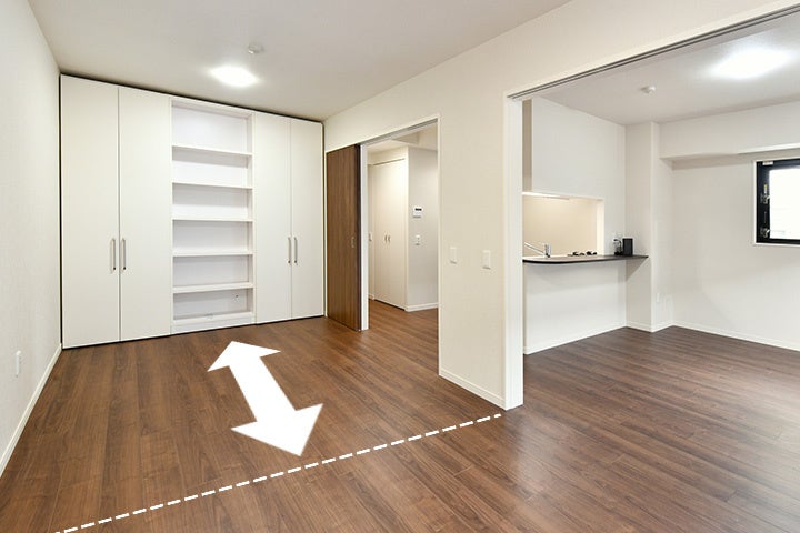 専有面積62.32㎡の2LDKの住戸では、洋室に可動式家具を活用し、ライフスタイルや暮らしの変化に合わせて洋室を区切るなど、自由に間取りが変更できます。(全2住戸)