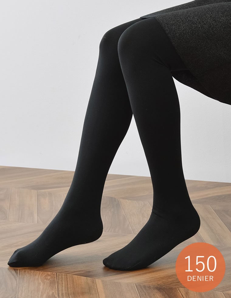 肌が透けにくい150デニールの厚みで、お腹周りから爪先まで暖かさをキープします。