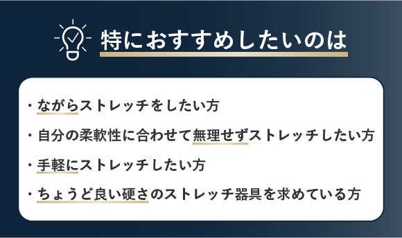 - 「伸ばす・広げる・ほぐす」の3動作を効果的に行える