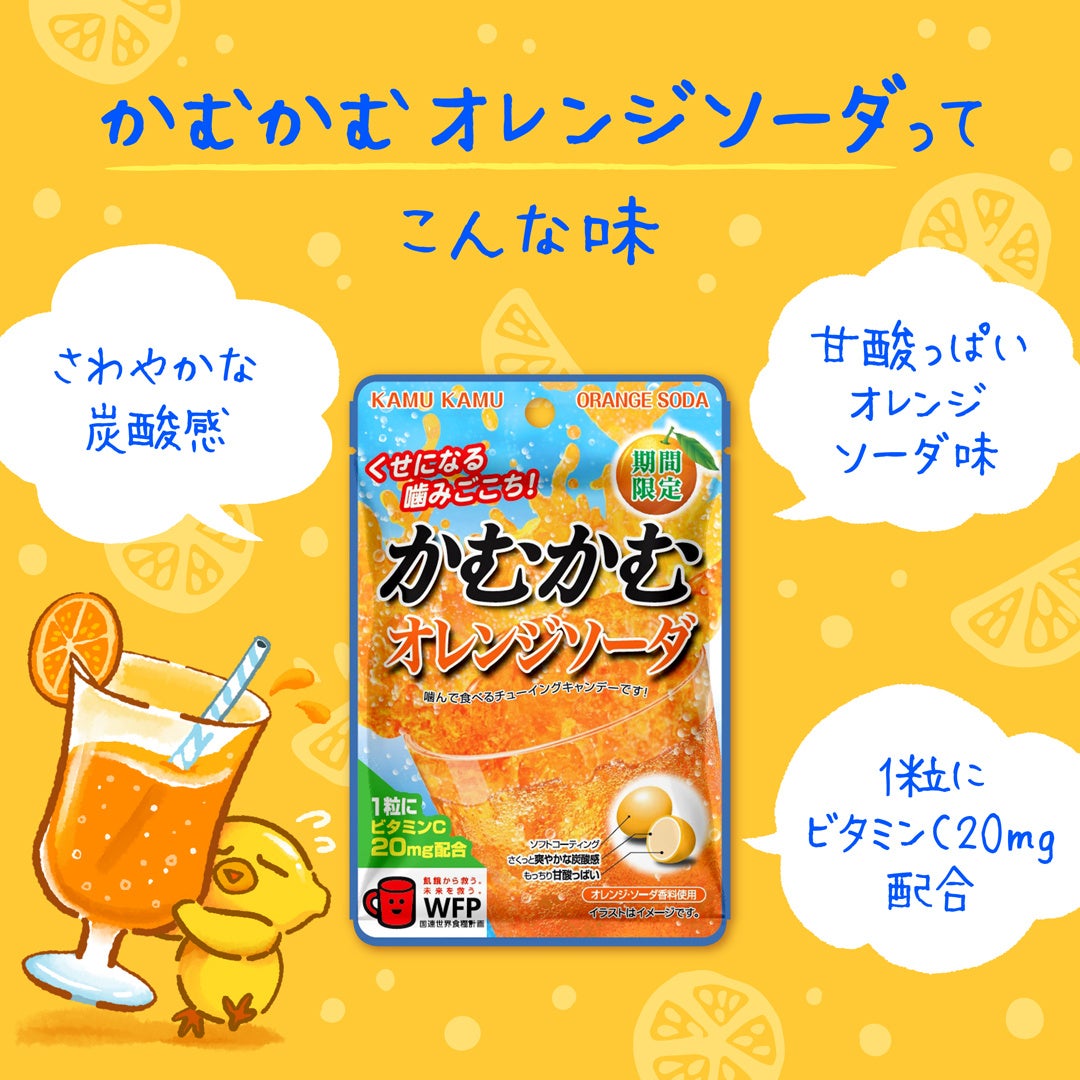 大好評のかむかむ炭酸シリーズよりオレンジソーダ味が登場!