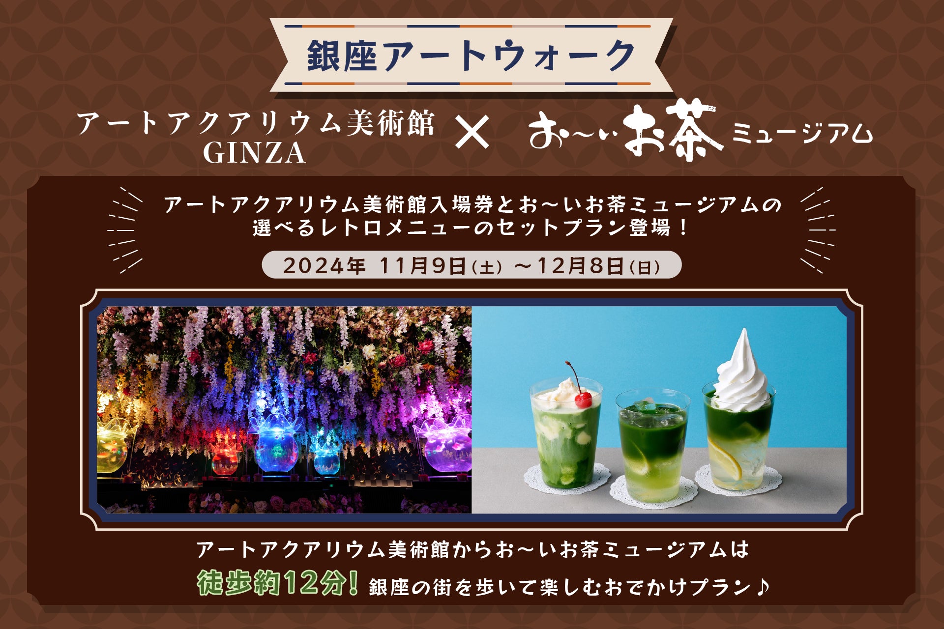 銀座の街を歩いて芸術の秋を楽しもう! アートアクアリウム美術館 GINZAの入場券とお~いお茶ミュージアムカフェのレトロメニューがセットになった限定チケットが登場!