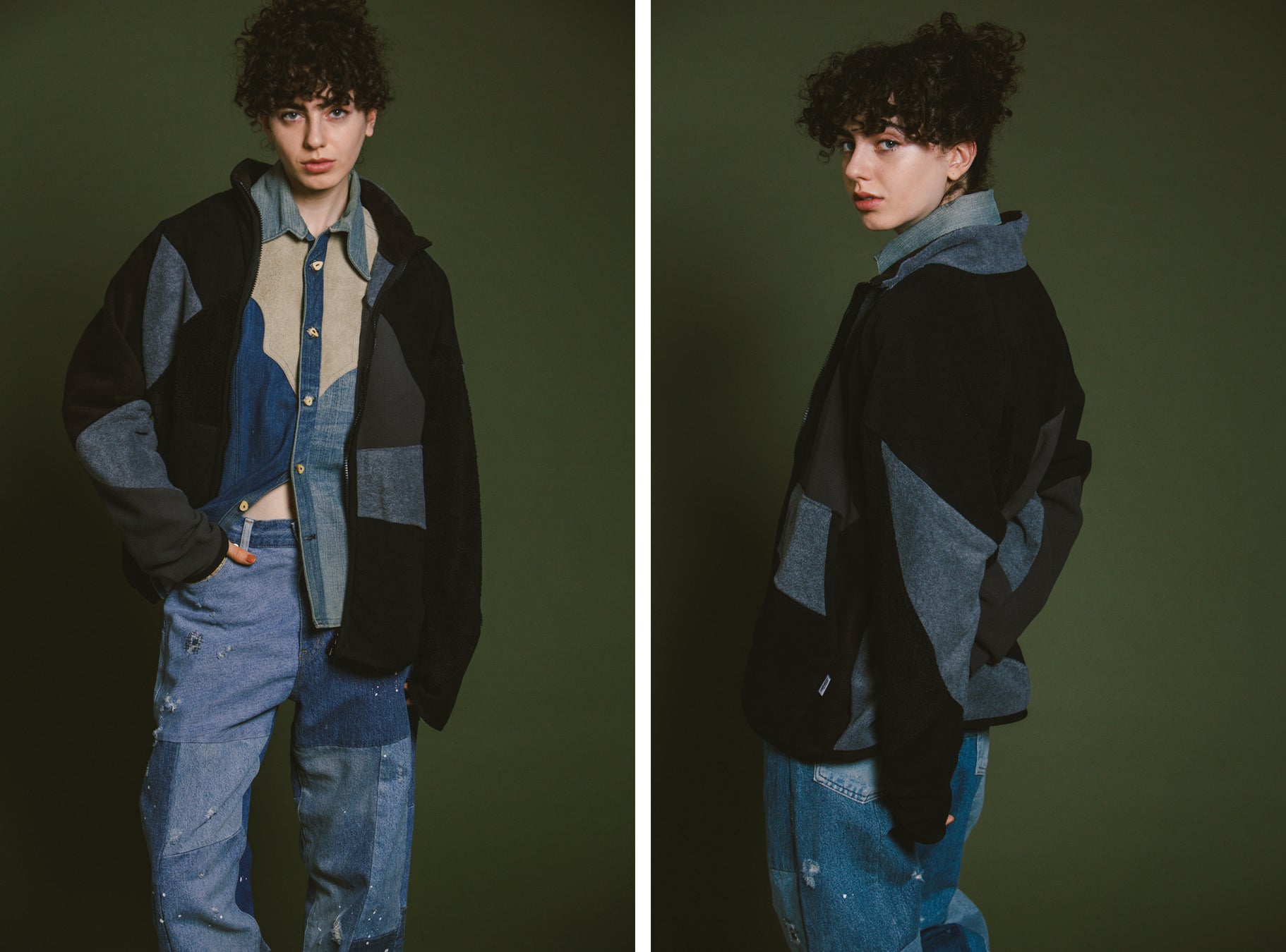 異なる生地を合わせたパッチワーク生地の織り成す唯一無二の表情、デザインが魅力の rebear by Johnbull(リベア バイ ジョンブル)にウールとフリースのパッチワークを使用した冬のニュールックが登場。