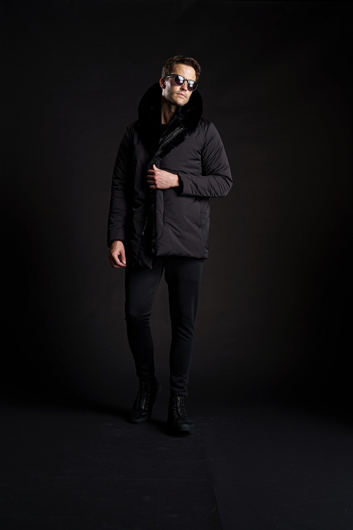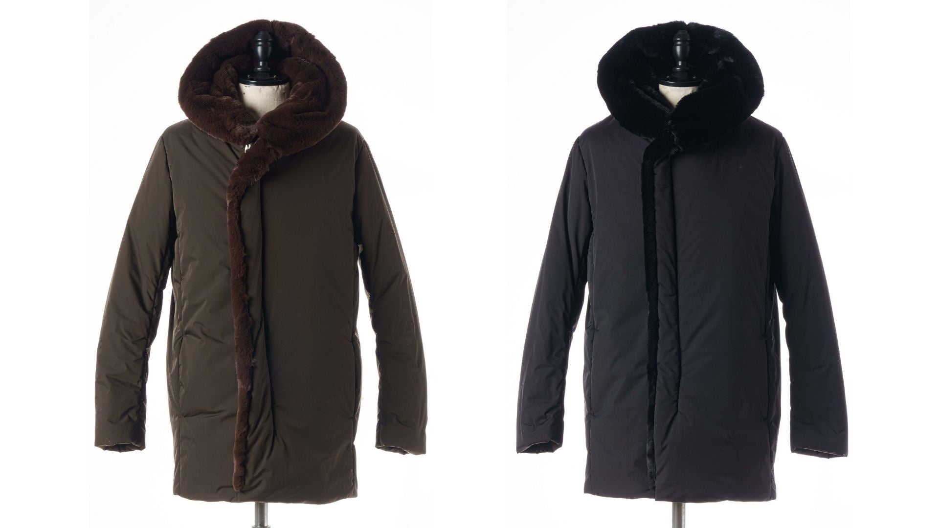 wjkを代表するフードコートである「witch coat」。ウールやジャージなど様々な素材でリリースしてきた同モデルを、今期は初となる異素材コンビによるラグジュアリー感を演出した一着に仕上げた。