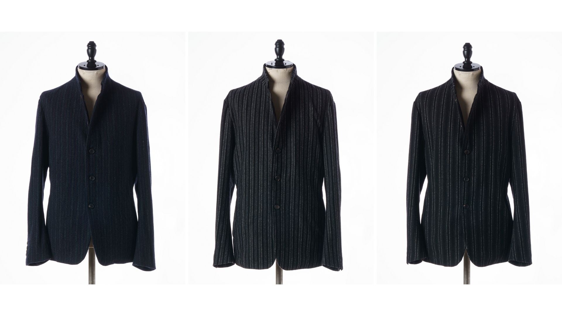 wjkの定番アイテムであるテーラードジャケット。よりカジュアルな装いを意識した、新型「sack jacket」を提案。 肩パッドや胸増しは排除し、カジュアルに羽織れる1枚に仕上げているものの、袖口はクラシックな本切羽、バックにはセンターベントを入れるなど、テーラードジャケット然としたディテールを取り入れている。