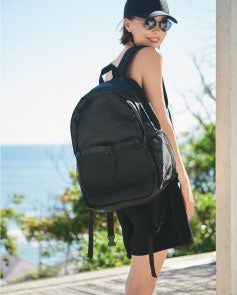 夏に気になる日差し対策にも使えるラッシュガード、キャップや、浅見れいなさんのママならではの目線をいれたパパも使いやすい大きめのリュックなど。