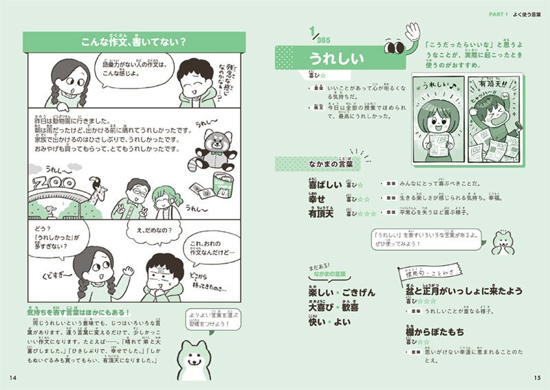 類語も含めて約2000個もの言葉を掲載しているのは本書だけ。本を読むことが苦手なお子さんでも、マンガやイラストで楽しく語彙力を身につけることができます。