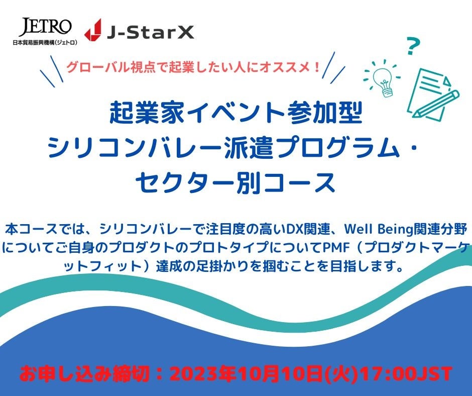 J-StarX 起業家イベント参加型シリコンバレー派遣プログラム(セクター別コース) 募集開始!!
