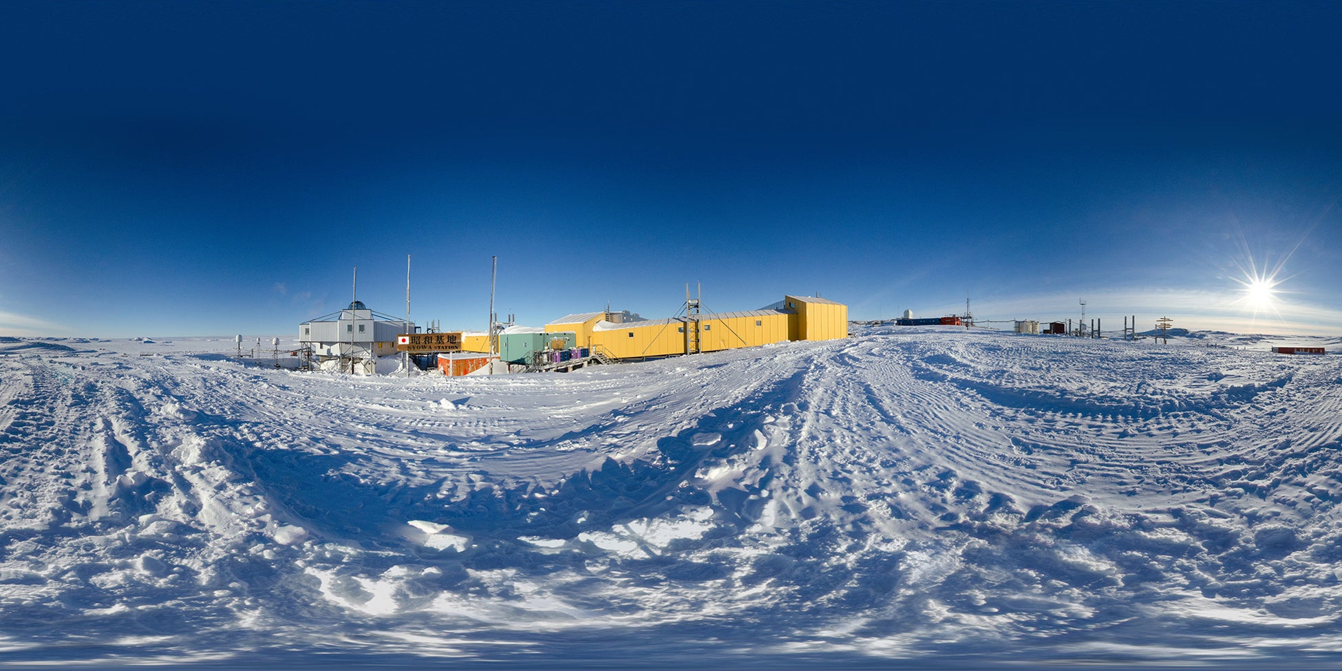 「南極eスクール」では、南極に関する話題を、地理・歴史・⽣活・⽣物・地学・宇宙の6分野に分けて紹介しています。それぞれの分野で紹介される360度パノラマ画像が、使⽤するデバイスに内蔵されるモーションセンサーと連動※4。⼿にしたデバイスの動きにあわせて画像が動き、まるでその場にいるかのような感覚で南極の景⾊を楽しむことができます。また、360度パノラマ画像に配置されたポイントをタップすることで、南極に⽣息する動物たち、太陽が沈まない⽩夜、隊員が⽣活する昭和基地内部の様⼦などに関するパネルがポップアップ。極地研の研究者が監修した解説とともに、それぞれの分野に関する貴重な映像、画像を⾒ることができます。