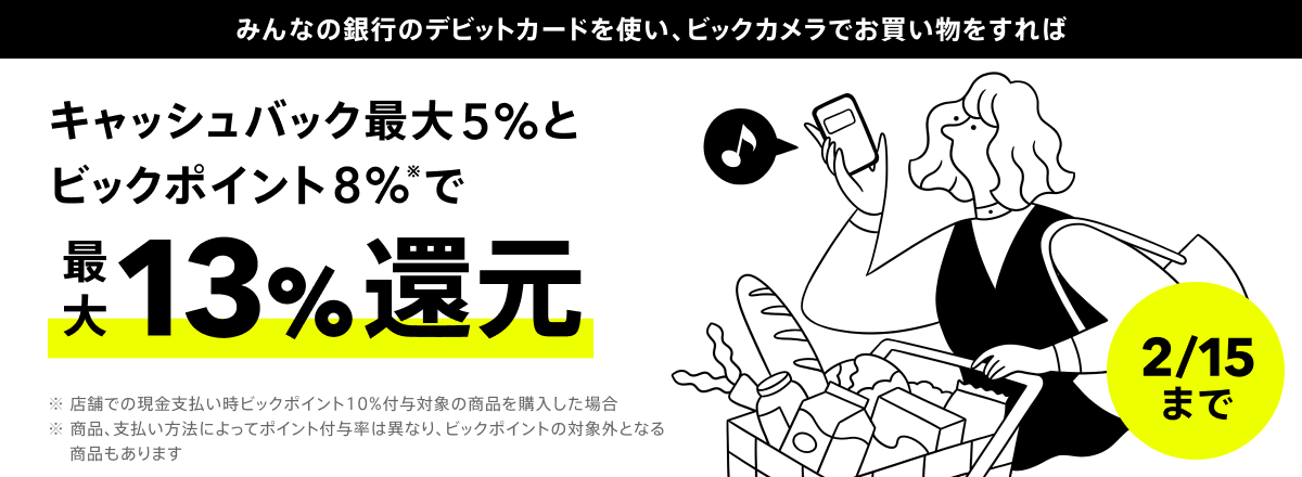 ※ビックカメラ.comでのお買い物の場合、2/15(木)までのお届け商品が対象です