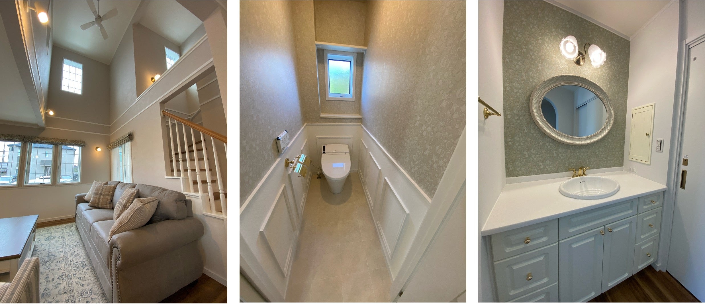 ラップサイディングのアメリカン住宅に憧れ、いわきのモデルハウスも見学してGLホームに決めました。家に合うようにアシュレイの家具や壁紙、照明器具や小物にもこだわり、イメージ以上の家に仕上がりました。夫婦それぞれの専用スペースは各々の好みを盛り込んだお気に入りの空間です。
